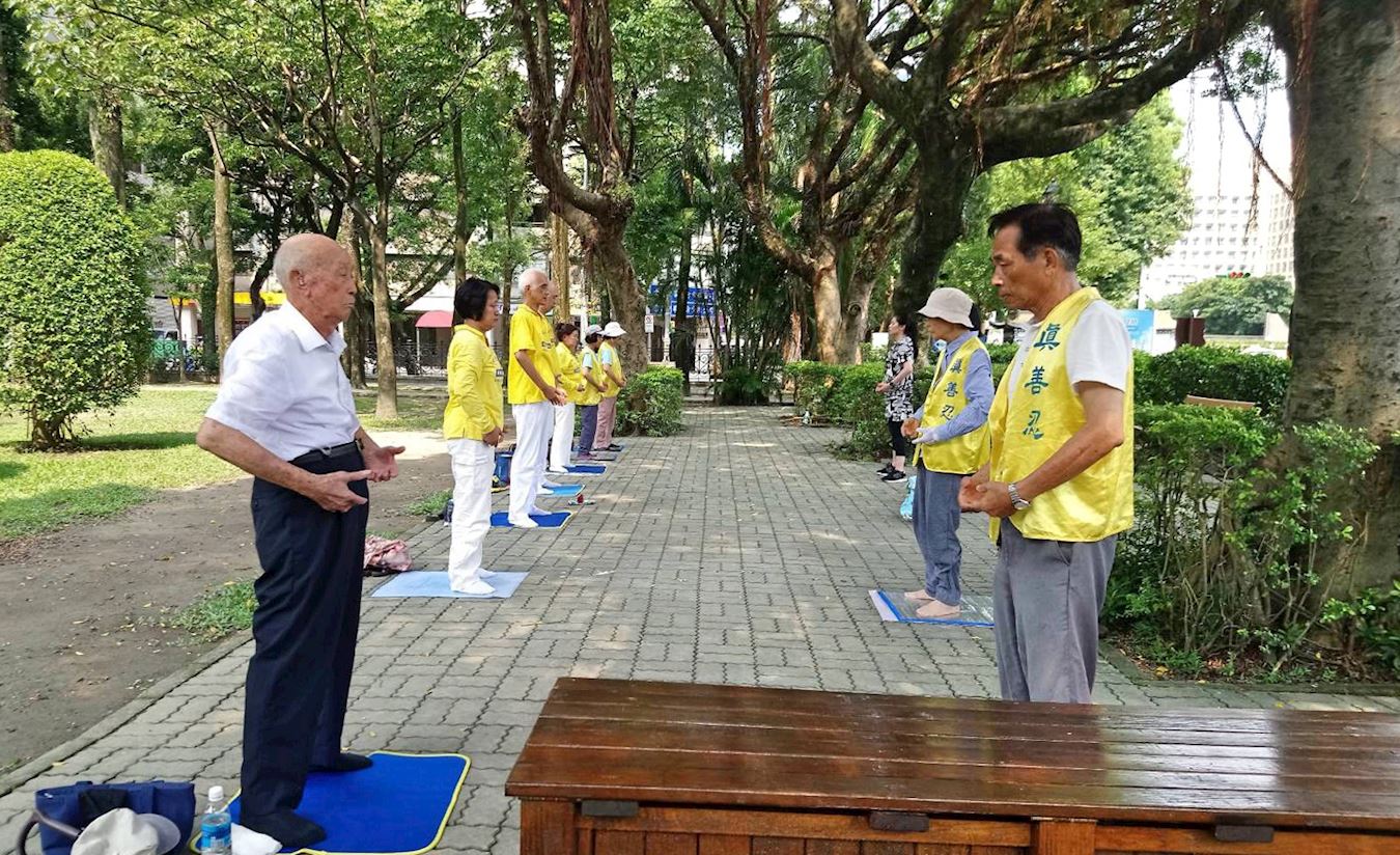 ![]() 图5:九十多岁的老伯伯(左一)每天炼功身体健康、心情愉快。 |