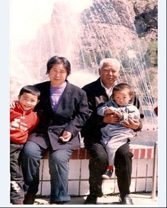 ![]() 从左至右分别是王爱云的外孙儿、王爱云、丈夫怀抱孙子 |