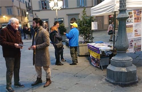 许多被优美的炼功音乐所吸引的行人纷纷停下脚步,要求了解更多信息。一位来自普拉托· 波塔尔· 阿尔· 萨拉格奥(Prato-Porta al Serraglio)车站附近的小伙子,询问了哪里可以学习功法,他说:“最近我正在寻找这类功法,我会来学功的,这正是我需要的。”