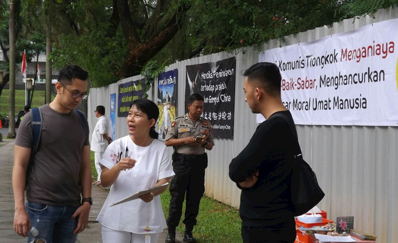 ![]() 图1~3:印尼雅加达法轮功学员在中使馆前集会纪念四·二五和平上访二十周年 |