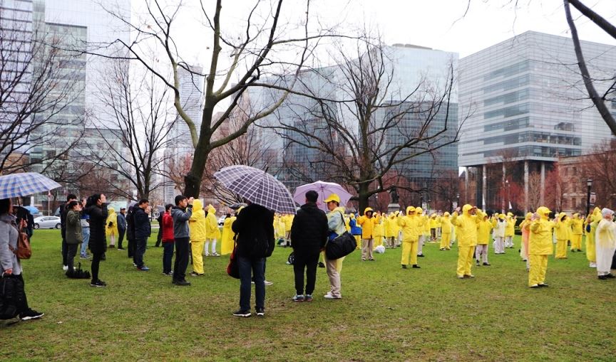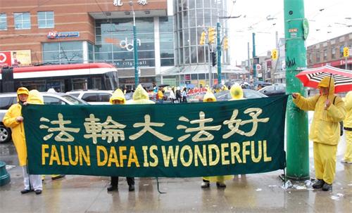 ![]() 图1:4月20日上午10点半开始的雨中集体大炼功。 |