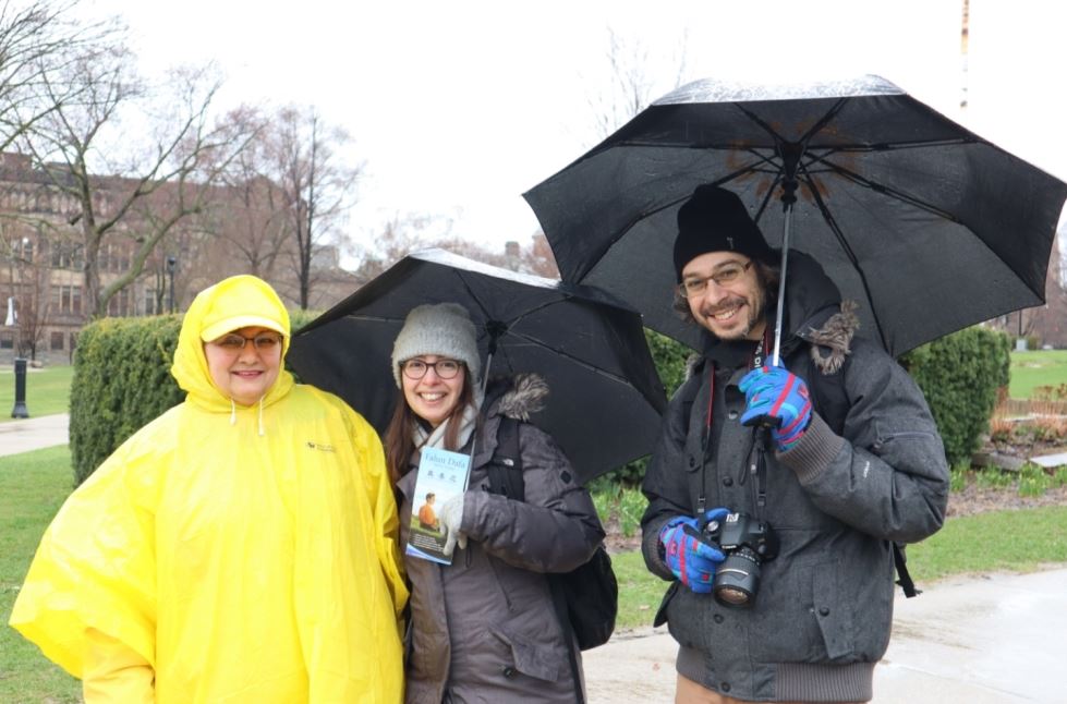 同时,他们也是第一次了解到法轮功在中国被迫害。他说,听到这样的一个群体在中国受到残酷迫害,我们非常难过。也明白了为什么法轮功学员在这样的下雨天会坚持出来举行这次活动。他们表示非常开心能够知道法轮功,并拿了一份真相传单表示回去后仔细阅读。