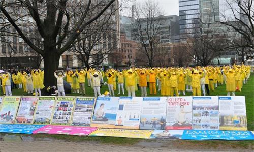 新闻发布会结束后,下午学员们继续转到唐人街筑起了“真相长城”给路人讲真相,一直到晚上八点又回到省政府楼前举办烛光悼念,纪念二十年来被中共迫害致死的法轮功学员。