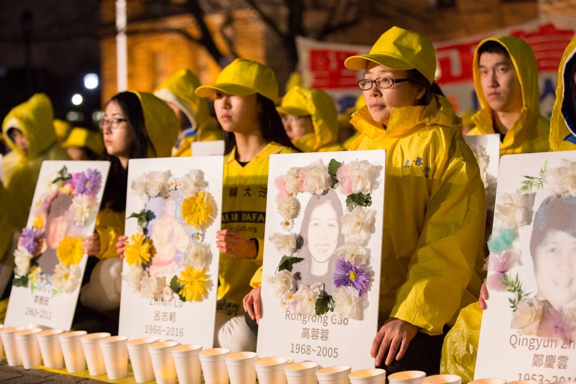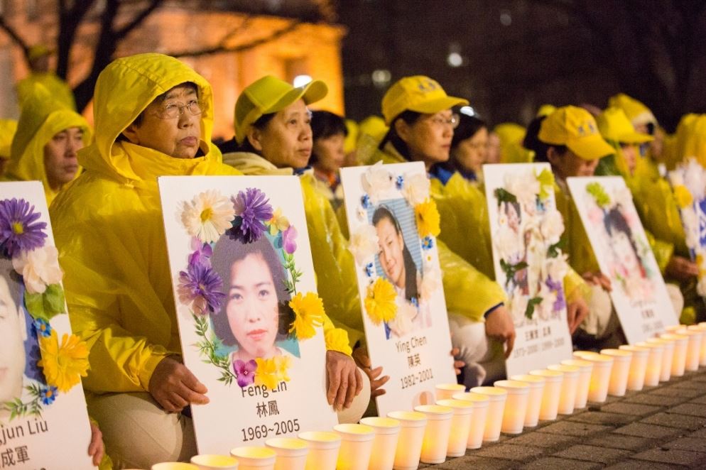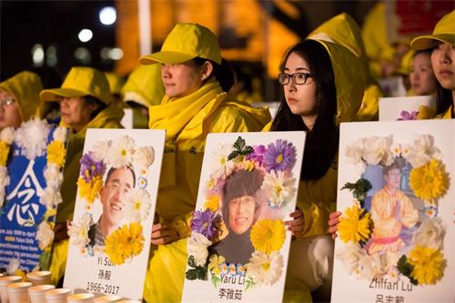 ![]() 图11~17:晚上八点至十点,多伦多法轮功学员在安省政府楼前举办烛光悼念,纪念二十年来被中共迫害致死的法轮功学员。 |