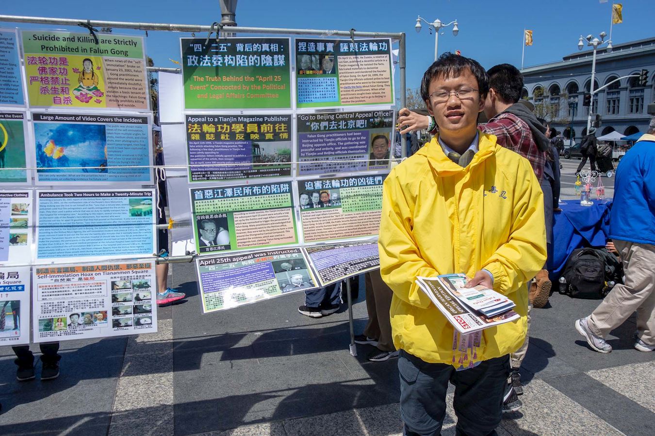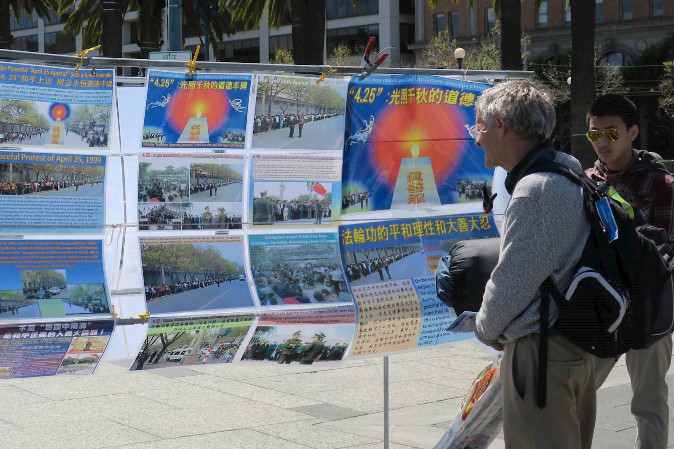 法轮功学员黄大卫(David Huang)参加了讲真相活动。他表示,当年四·二五发生时,他的父母参加了北京四·二五和平上访,当年他年仅十一岁。七·二零时,他的父亲和姑姑被抓捕。因为修炼法轮功,他父亲申请评教授的名额也被取消,还被非法关押了一个月。