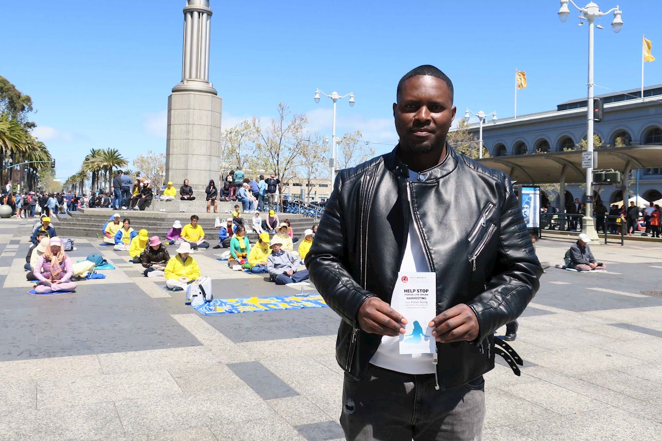 从佛罗里达来旧金山旅游的彼得·惠特克 (Peter Whittakerr)首次听说法轮功在中国受迫害之事,也不敢相信在中国因没有信仰自由而遭受迫害,他感到震惊。随即拿起手中的传单和中共活摘法轮功学员器官的真相传单,拍照传到他的脸书告诉所有的朋友。