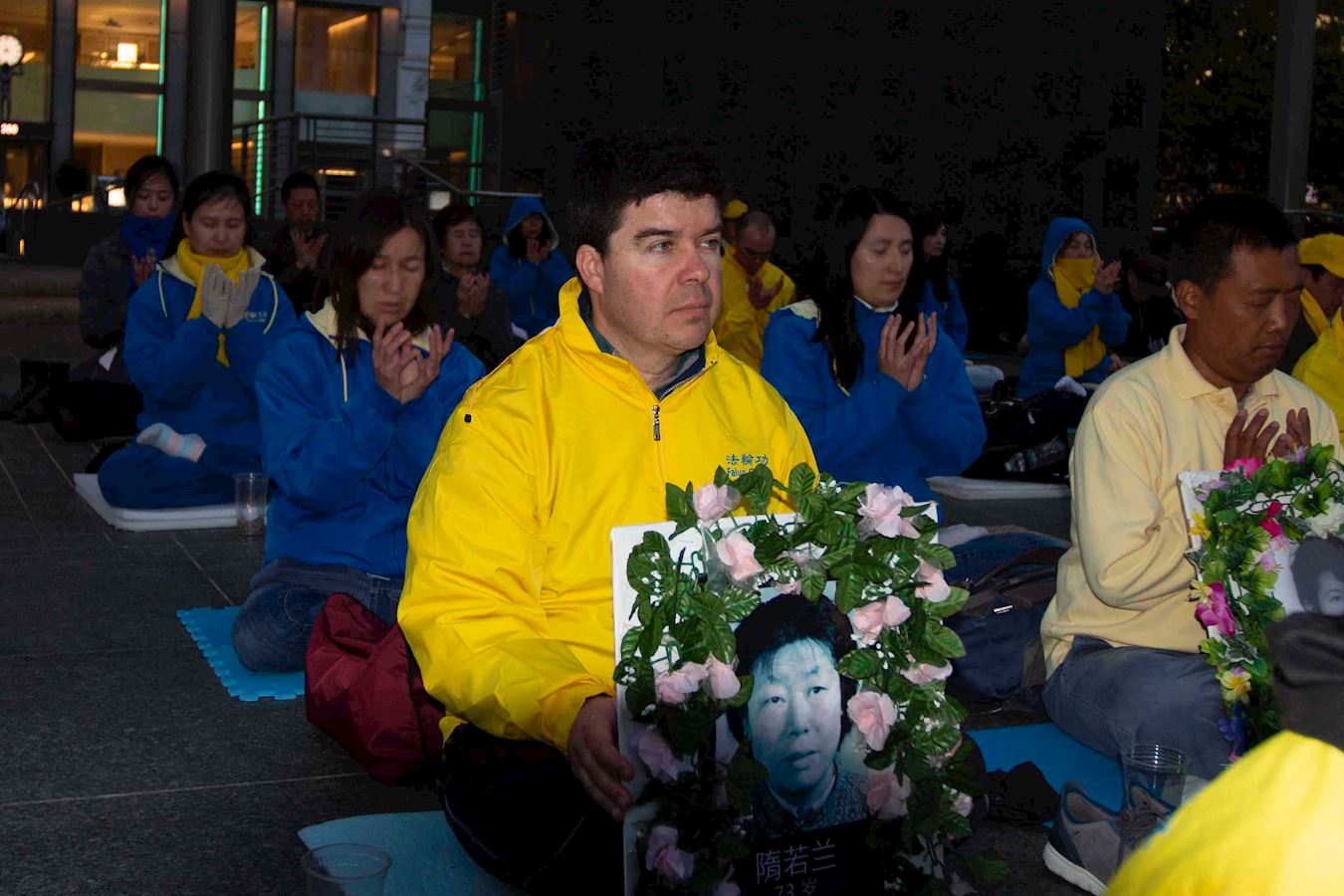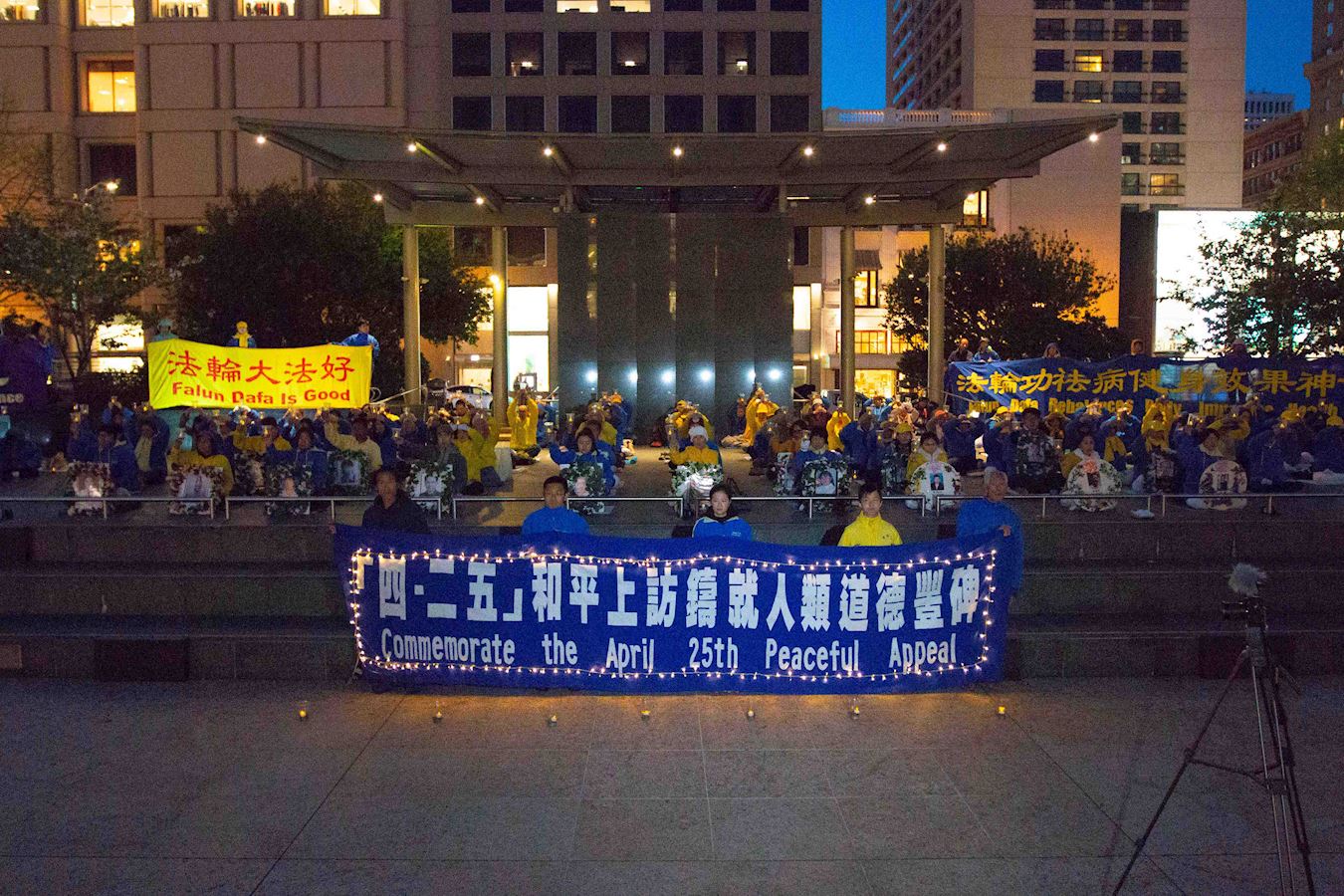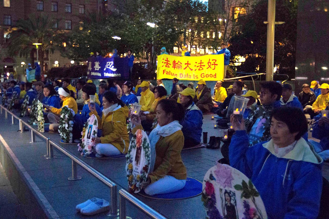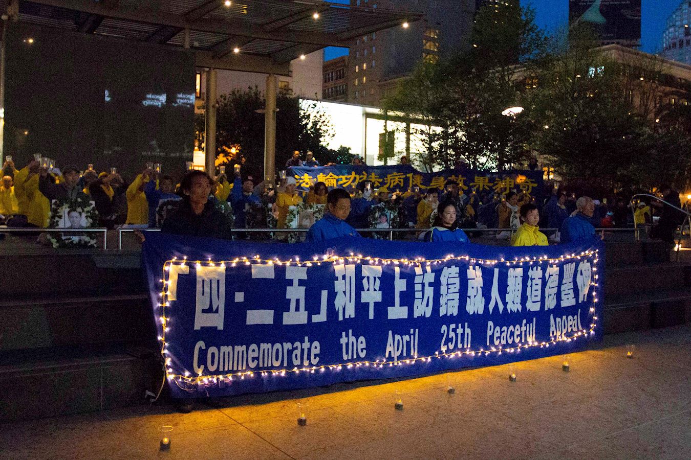 下午四点,法轮功学员还在位于市中心的联合广场炼功,并举办烛光守夜,传播法轮功的美好,告诉民众法轮功的真相,悼念被迫害致死的同修,同时唤醒民众的正义良知。