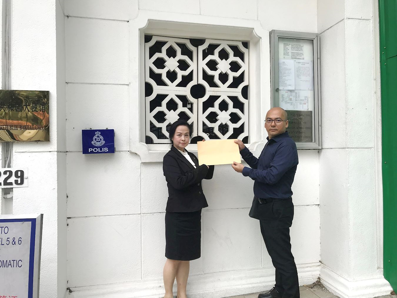 ![]() 图2:法轮功学员代表林先生现场宣读马来文文告。 |