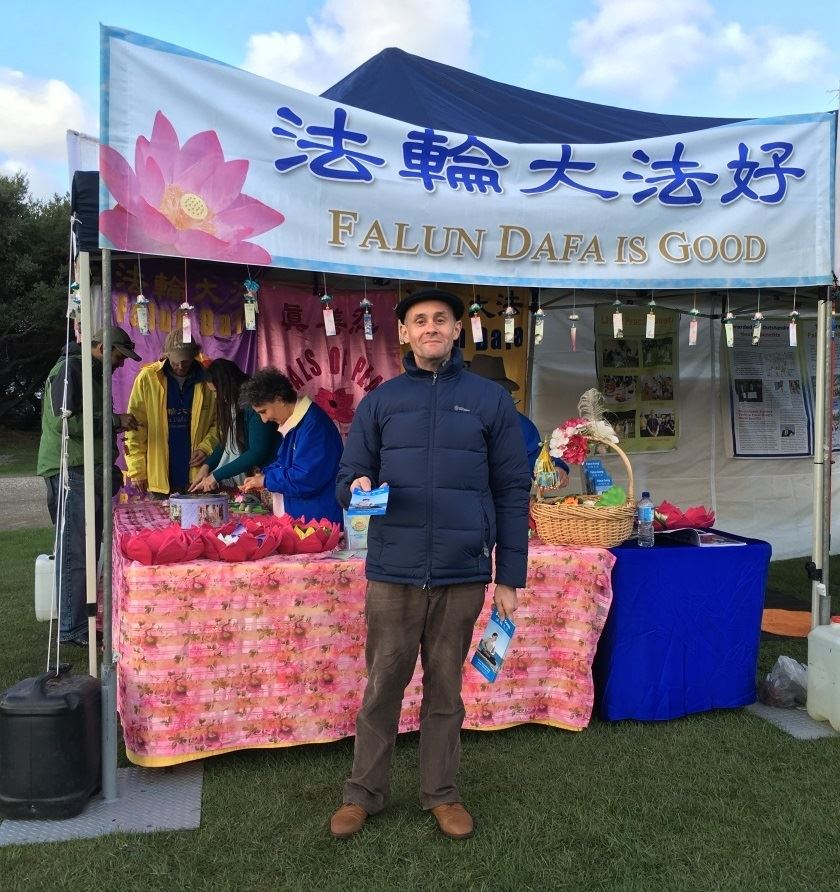 图3:墨尔本法轮功学员马克·贝特曼(Marc Bateman)在地方节庆活动中向民众介绍法轮大法。