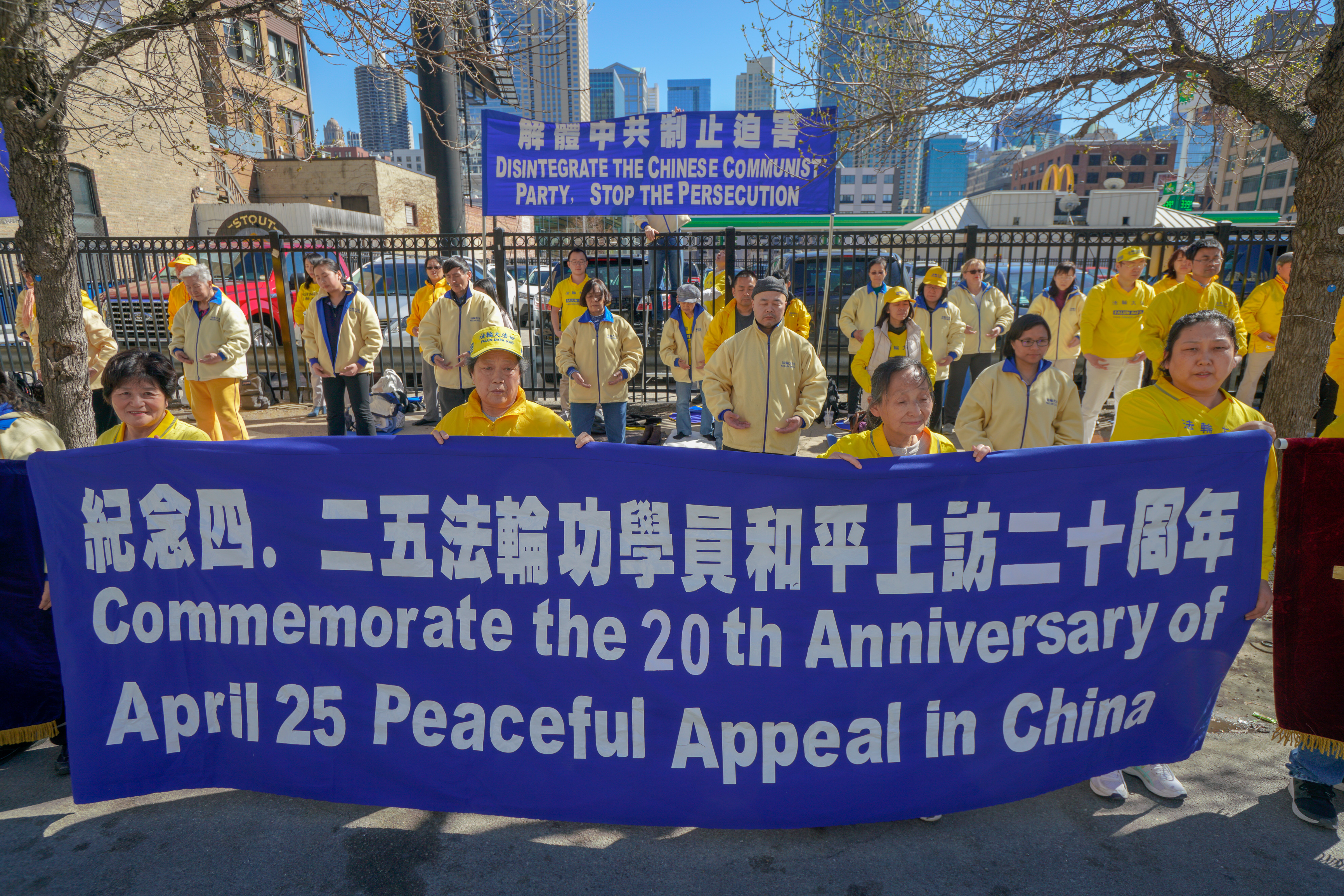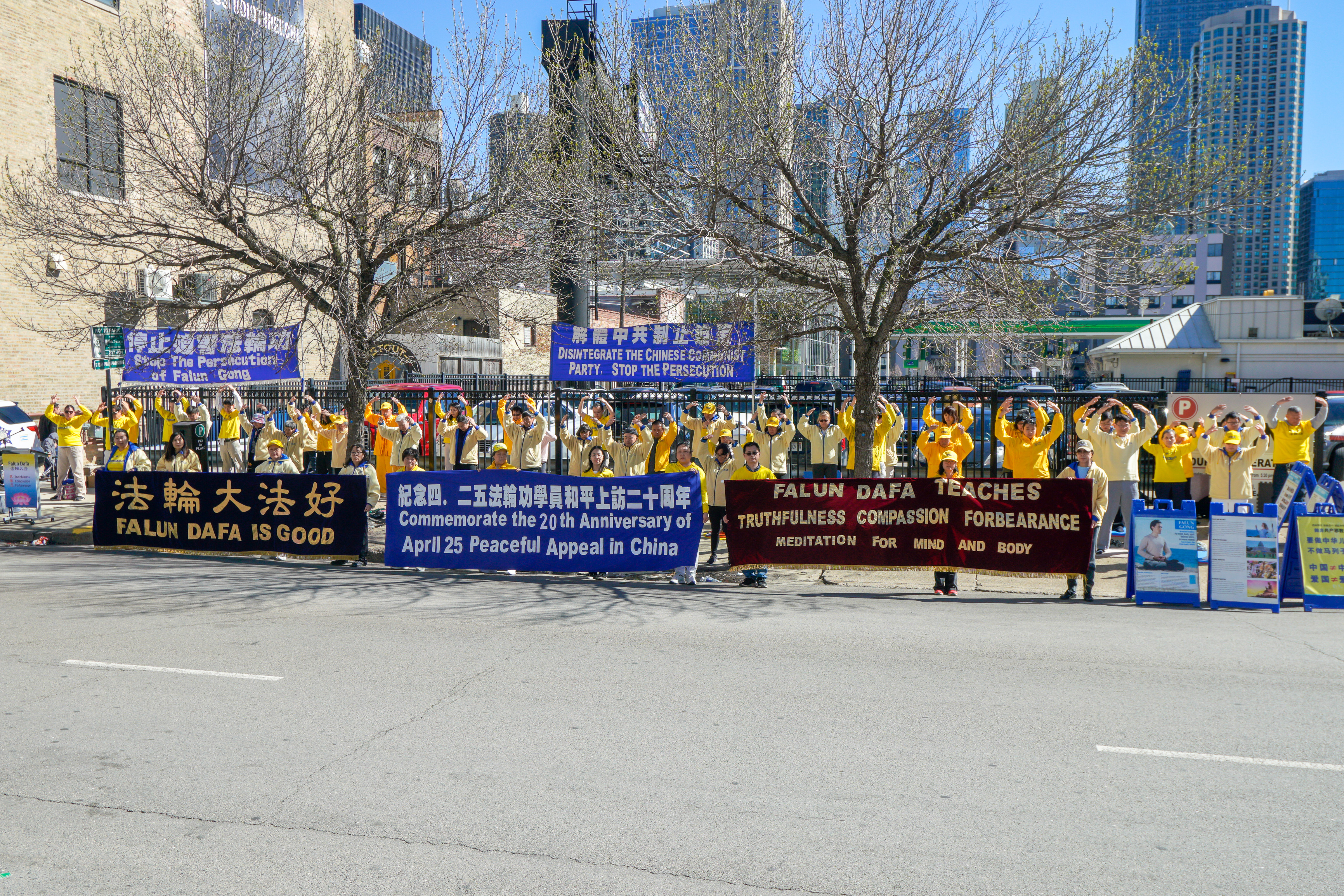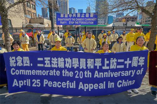 ![]() 图1~3:芝加哥法轮功学员在中领馆前集会,纪念“四·二五”万人和平上访二十周年。 |
