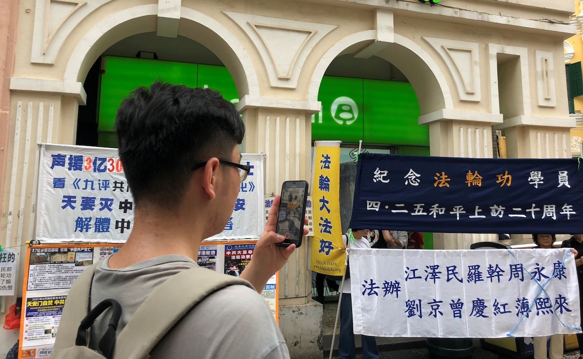集会期间,更多的大陆民众除默默地观看图片外,还默默地观看大法学员和平及理性的风貌。也有很多民众,拿出他们的手机,不停地对集会进行拍摄和录影。 只要迫害一天不停止,澳门法轮功学员也将延续四二五和平上访的方式,持续反迫害,同时向民众讲述大法的美好,帮助大陆民众退出中共党、团、队组织,拥有美好的未来。