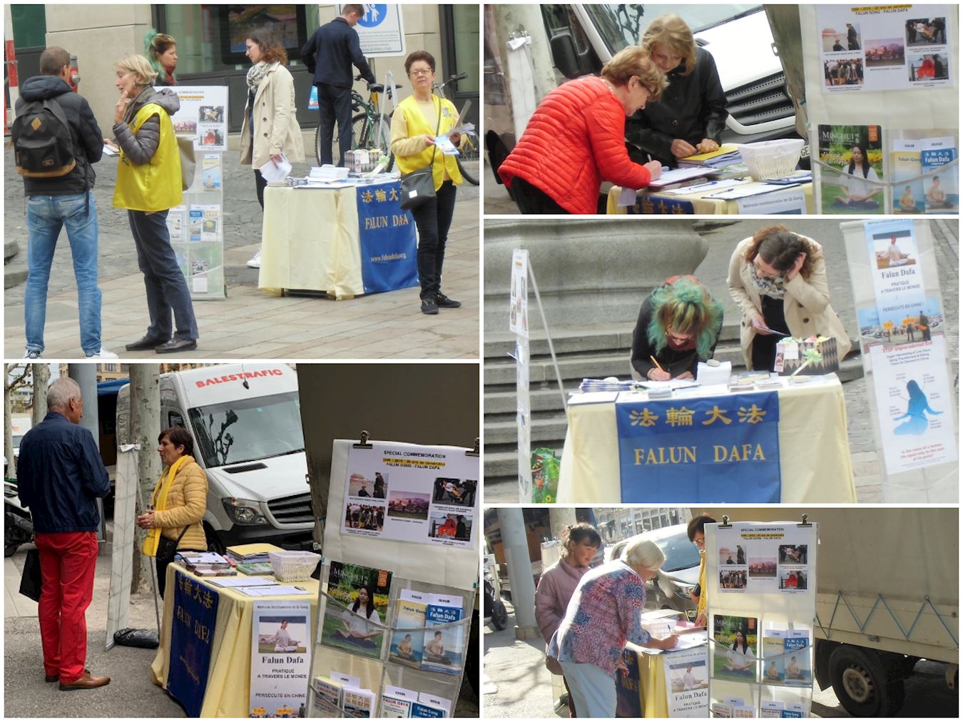 许多人还表示了对学炼法轮功的浓厚兴趣,了解法轮功炼功点的地址和炼功时间。近年来,在日内瓦陆续不断地有新学员来炼功点学习法轮功,有的新学员还主动来摊位参加讲真相活动。
