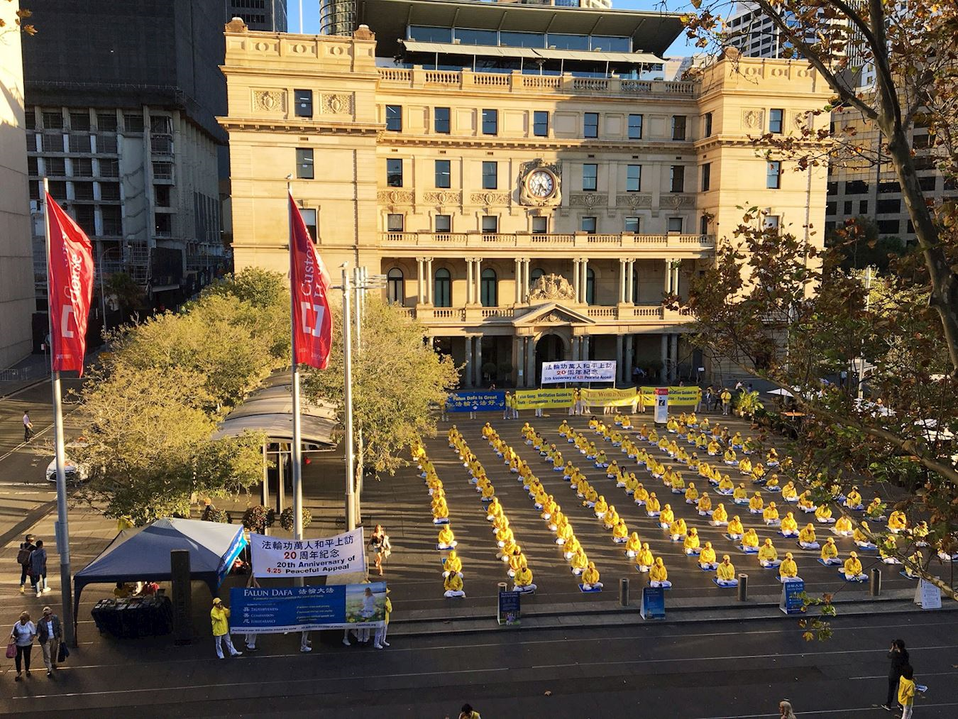 ![]() 图1~3:为纪念“四·二五”法轮功学员万人和平上访二十周年,悉尼法轮功学员于二零一九年四月二十四日在悉尼市中心海关大楼门前广场集会 |