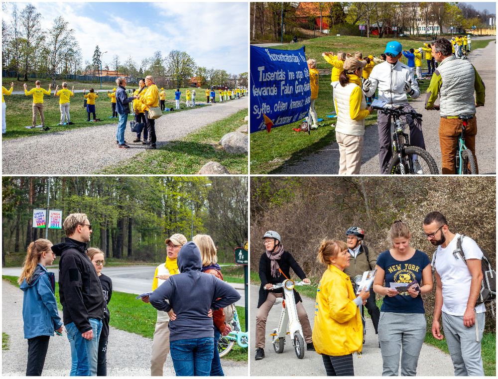 下午两点,法轮功学员们又来到斯德哥尔摩市中心皇宫旁最热闹的钱币广场上,继续向当地民众和过往路人讲述法轮功真相,呼吁瑞典民众都来支持正义、帮助停止迫害。