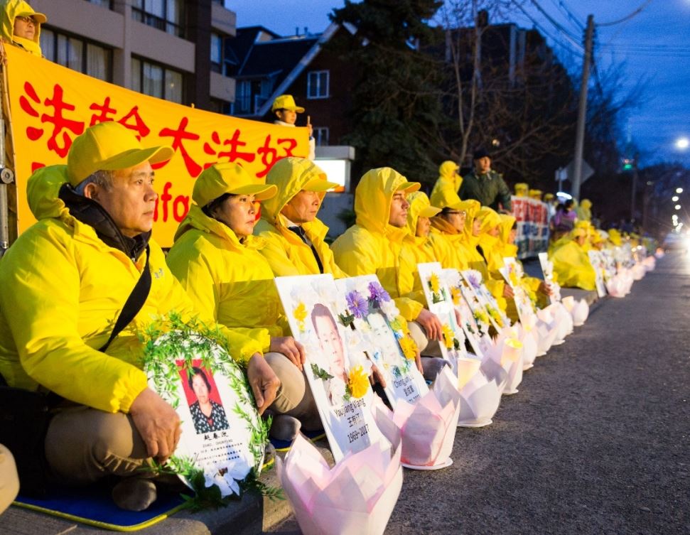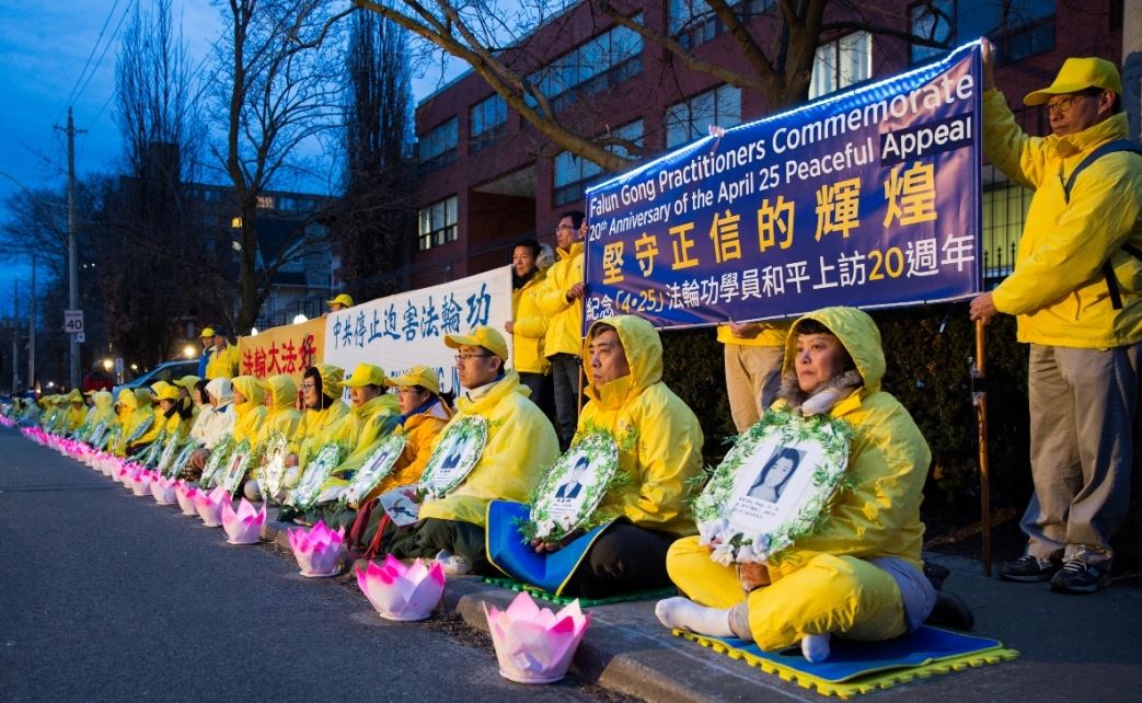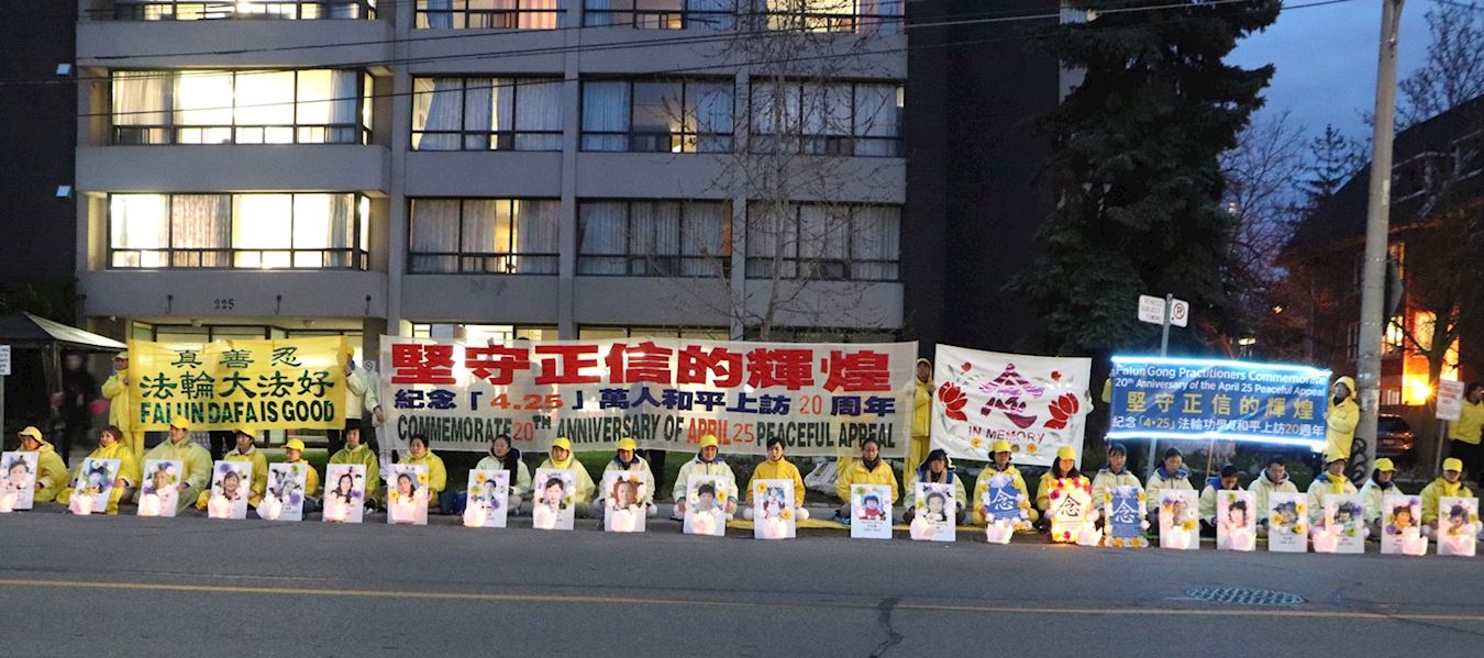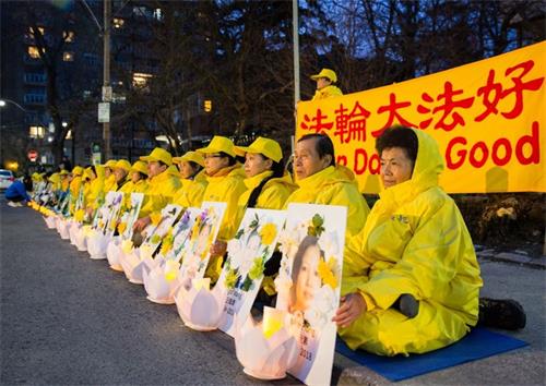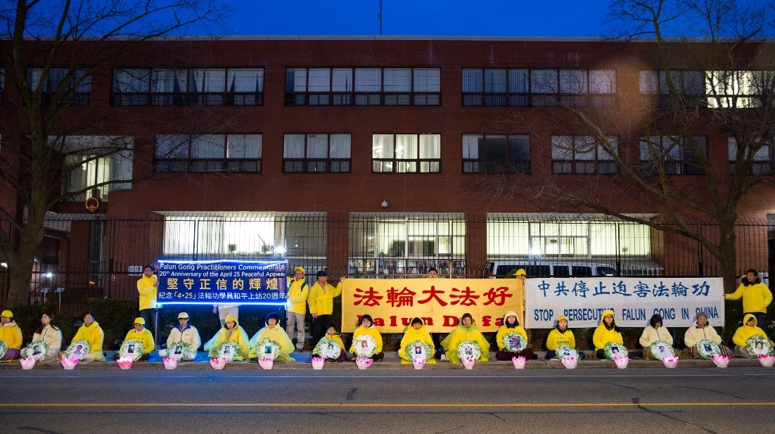 ![]() 图1~8:纪念“四·二五”二十周年,多伦多法轮功学员四月二十五日晚八点至十点在中领馆前会举行烛光悼念活动。 |