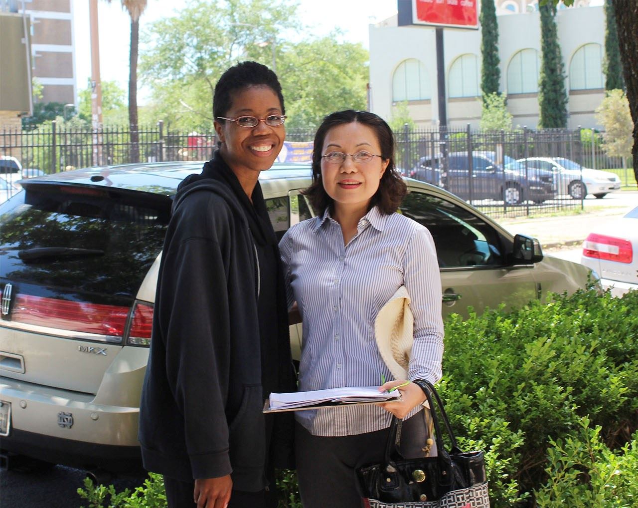 耶内达(Yeretta)女士看见这么多法轮功学员在中领馆前平静地站立,很好奇,想知道发生了什么事情?法轮功学员付女士告诉她:“今天下午是法轮功学员纪念和平上访二十周年,这是一个修炼真善忍的团体,在中国没有信仰的权利。二十年前,当时的中共恶首江泽民下令禁止法轮功,法轮功学员被迫害,关进劳教所,有些学员被强制活摘器官。”耶内达听了后,问:“二十周年了,这么长时间!我怎么做可以帮助你们?”学员付女士拿出真相传单,上面列出几种帮助的办法,其中之一就是将真相资料与其他朋友分享。耶内达拿出手机,打开了她在脸书上的群组,请她的朋友们联络参议员、众议员关注法轮功、支持法轮功。临走前,她还在“停止迫害法轮功”签字板上签名,支持法轮功。