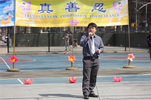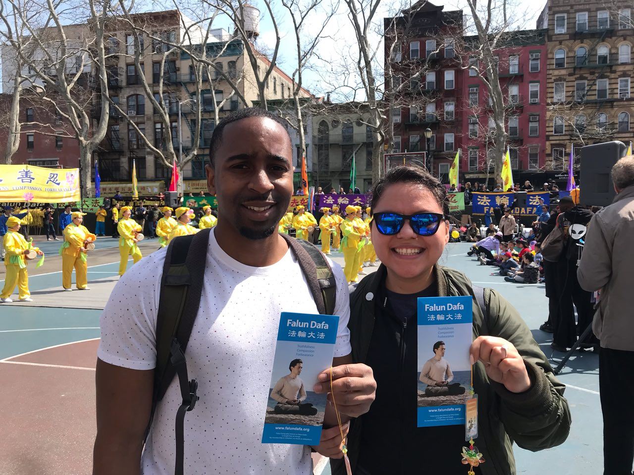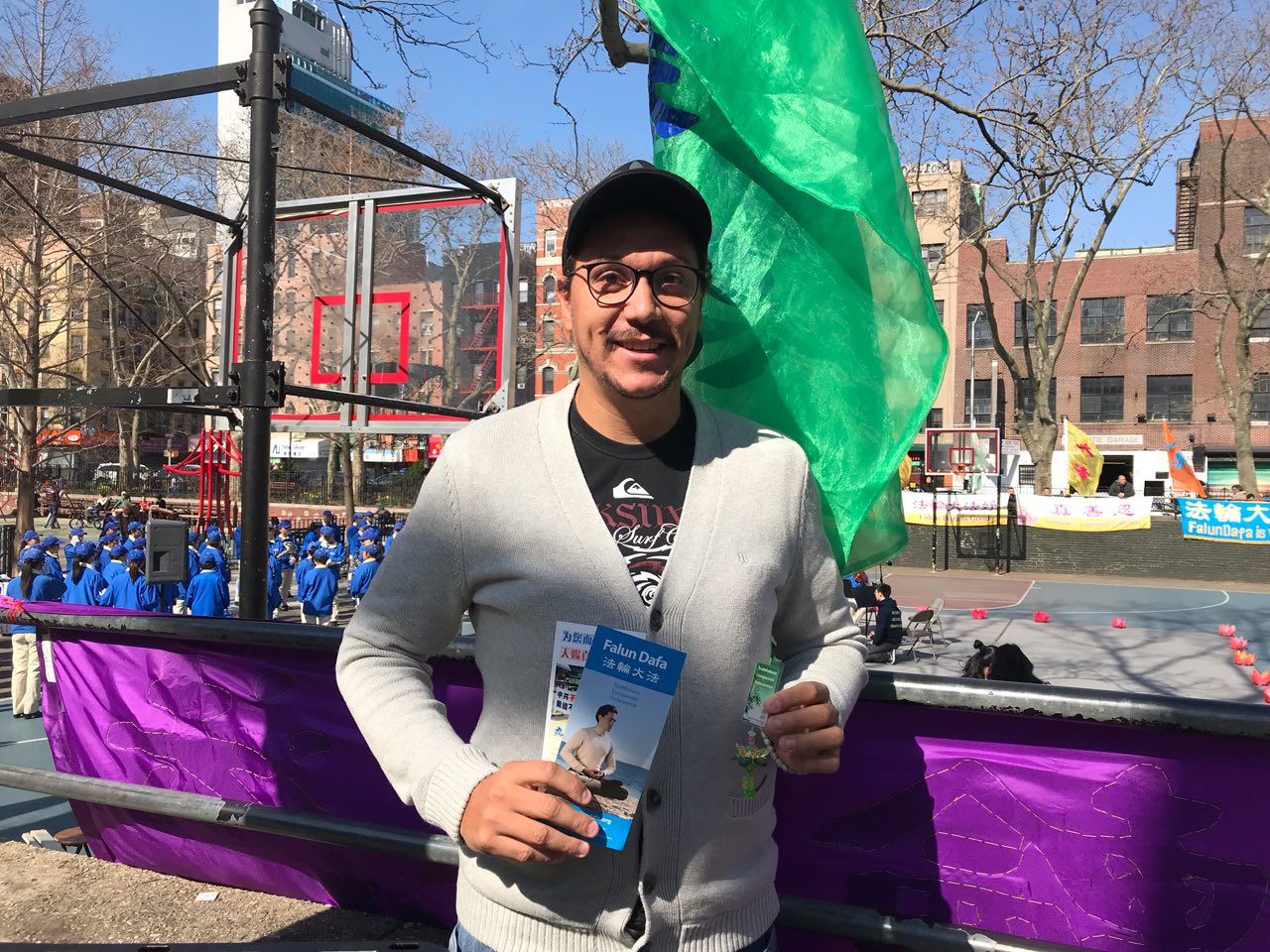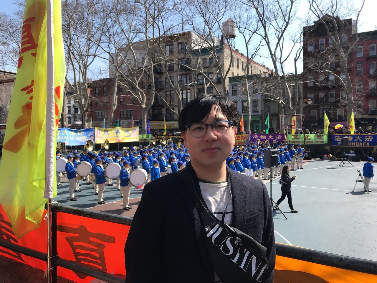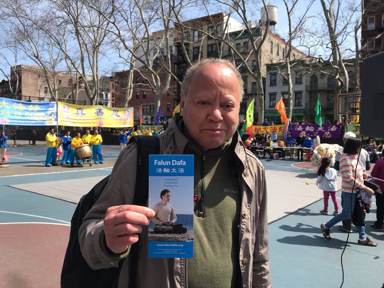 纽约居民黄先生说,他从大陆来美后心里压抑,“那天我就偶尔随同正在炼功的法轮功学员比划比划几个动作,结果我那天心情就好受多了。我知道法轮功对身体好,想炼。”他说:“今天看见法轮功这些演员的精神状态,我就更想炼了。刚才我就在问到哪里能学法轮功?已经有学员告诉我:五月三日在法拉盛台湾会馆正好开办一期新班。”