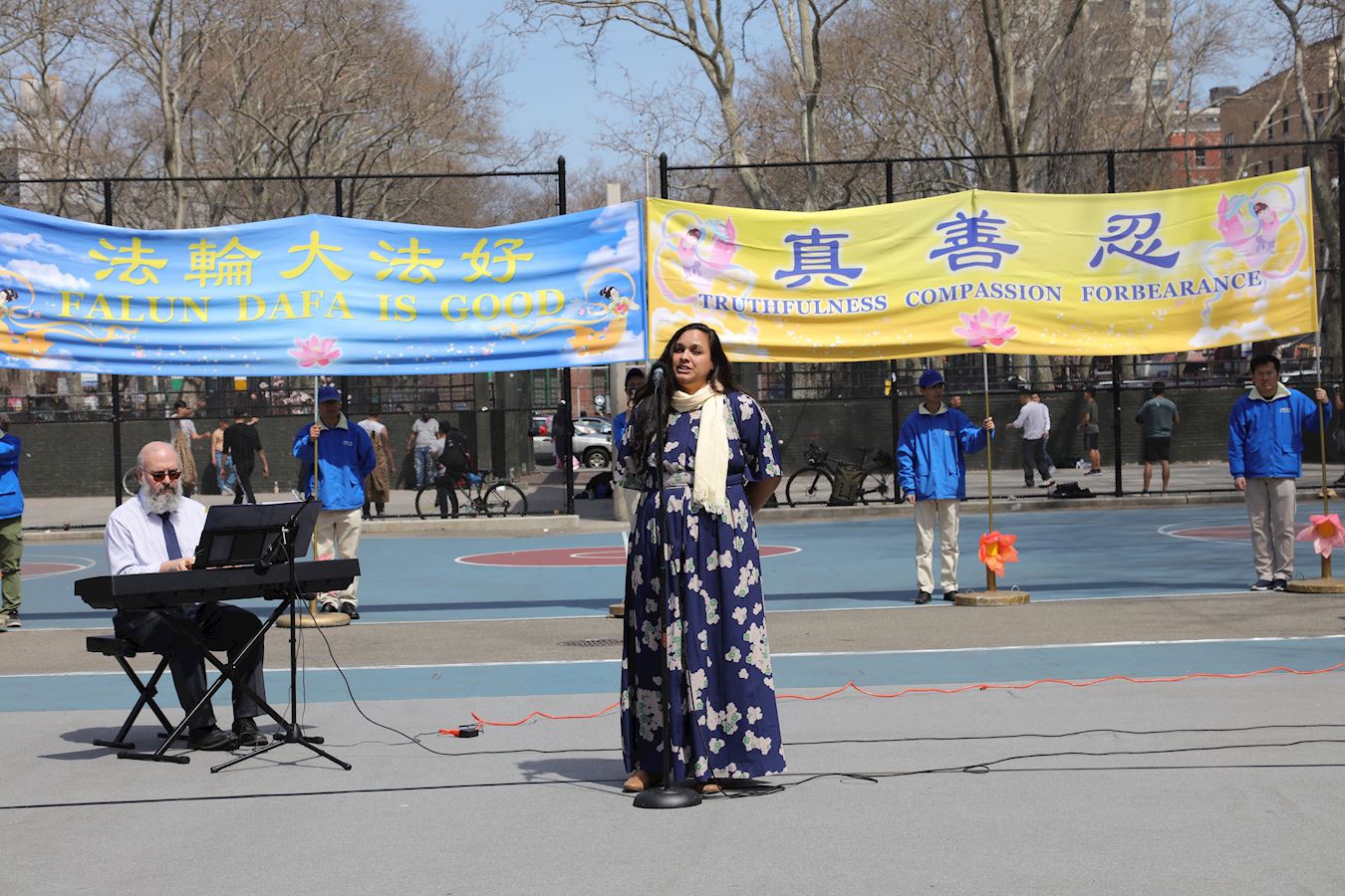 纽约市议员陈倩雯为活动发来贺词,赞扬法轮大法传递的传统价值以及做人的理念。贺信译文如下: