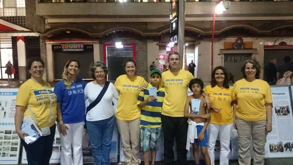 二零一九年四·二五之际,圣保罗的法轮功学员们组织了两天的活动。他们在中共领事馆前和平抗议,要求中共政权遵守法律,立即停止迫害法轮功。在亚裔区自由(Liberdade)中心广场,学员摆出真相展板,并向路人展示功法。