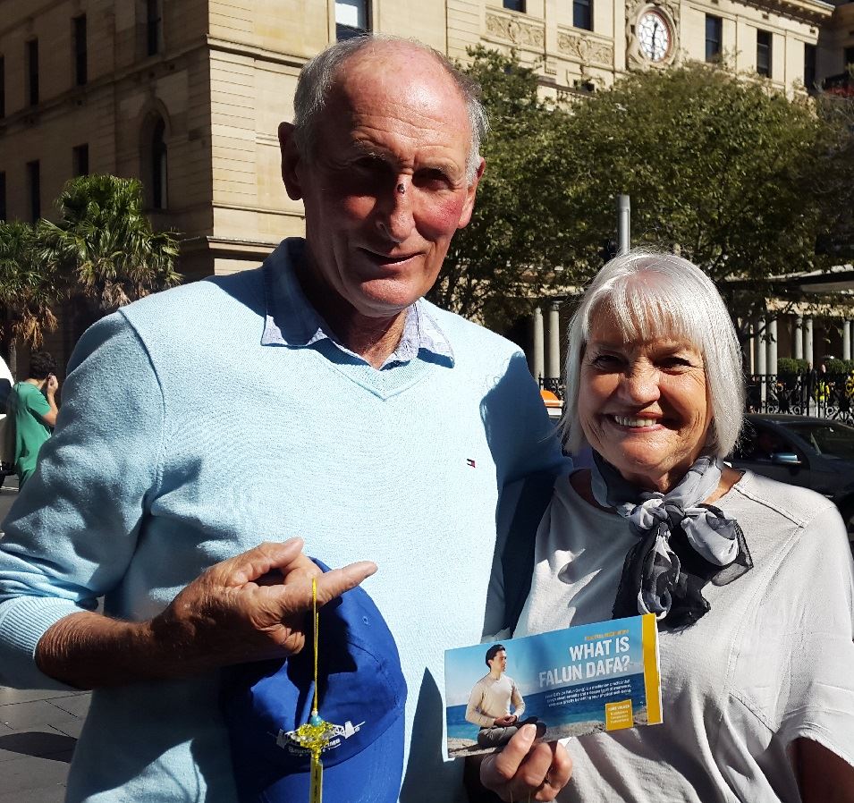 在一旁看游行的约翰·比尔(John Bueell)先生表示:“今天当我要和同伴去看悉尼交响乐团演出路途上看到铜管乐团(天国乐团)的表演,让我震惊,令我非常感动,真是太了不起了!他们演奏的曲调令人如此欢欣鼓舞!我无法想象能有如此庞大和优秀的天国乐团!我们今天很幸运能够在听交响乐团前听到法轮功的天国乐团演奏。今天我们只付了一份钱却能看两场演出!一天看两个乐团演出!我认为每个人都应该尊重和按照法轮功的‘真、善、忍’修身养性。我会把这莲花挂在我家里,每天看到它,我就想起法轮功和‘真、善、忍’。”比尔的同伴罗杰·亨尼西(Roger Hennesy)先生笑着接着说:“我完全赞同我同伴所表达的意思。我希望天国乐团有一天能在中国自由演奏!我送上我最好的期望!”