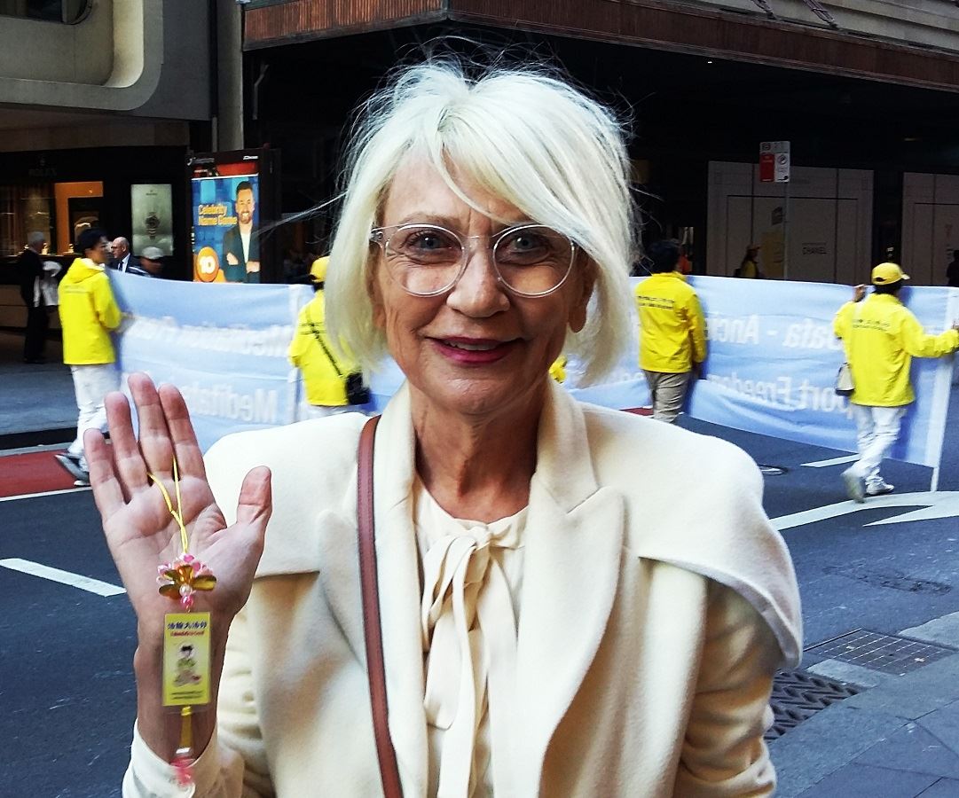 丽达(Lida)来自乌克兰,目前在悉尼居住,她的许多家人都在乌克兰受过迫害,所以她深深地了解并同情法轮功修炼者的处境。她非常支持法轮功学员以这种平和美好的方式向更多的世人讲述法轮功在中国受迫害的真相。她觉得很多世人都在沉睡,对这一重要的真相浑然不知,每个人都应该尽力去传播真相,这样更多的世人在多听多看多了解加上自己思考之后才能清醒的认识法轮功的真相。她还为法轮功修炼者送上自己美好的祝福,并坚信在大家努力过后真相一定会大白于天下。
