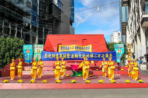 ![]() 图2~4:二零一九年五月十二日,墨尔本法轮功学员在市中心女王桥广场(Queensbridge Square)举行隆重庆典,恭贺第二十届“世界法轮大法日”和创始人李洪志先生华诞。图为学员们在表演节目。 |
