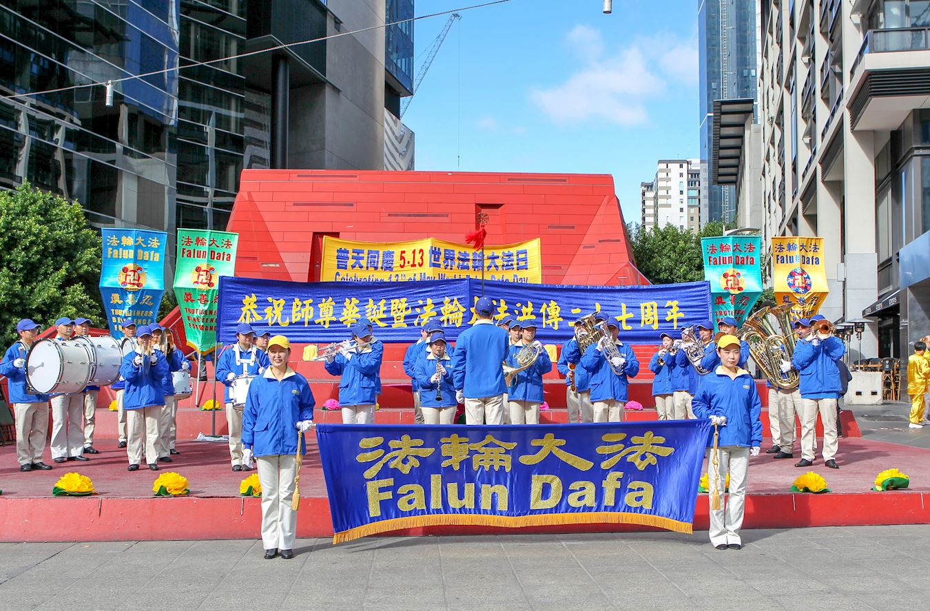 ![]() 图1:二零一九年五月十二日,墨尔本法轮功学员在市中心女王桥广场(Queensbridge Square)举行隆重庆典,恭贺第二十届“世界法轮大法日”和创始人李洪志先生华诞。图为学员们在展示功法。 |