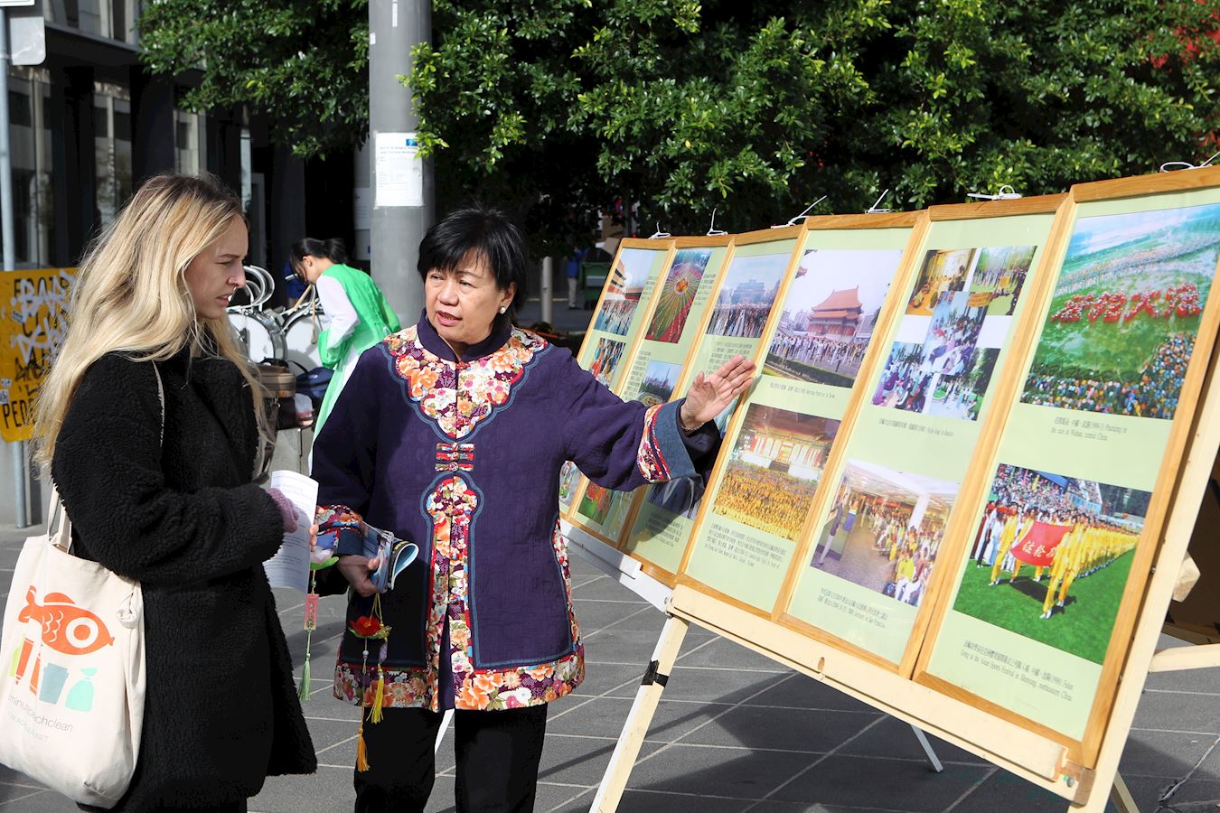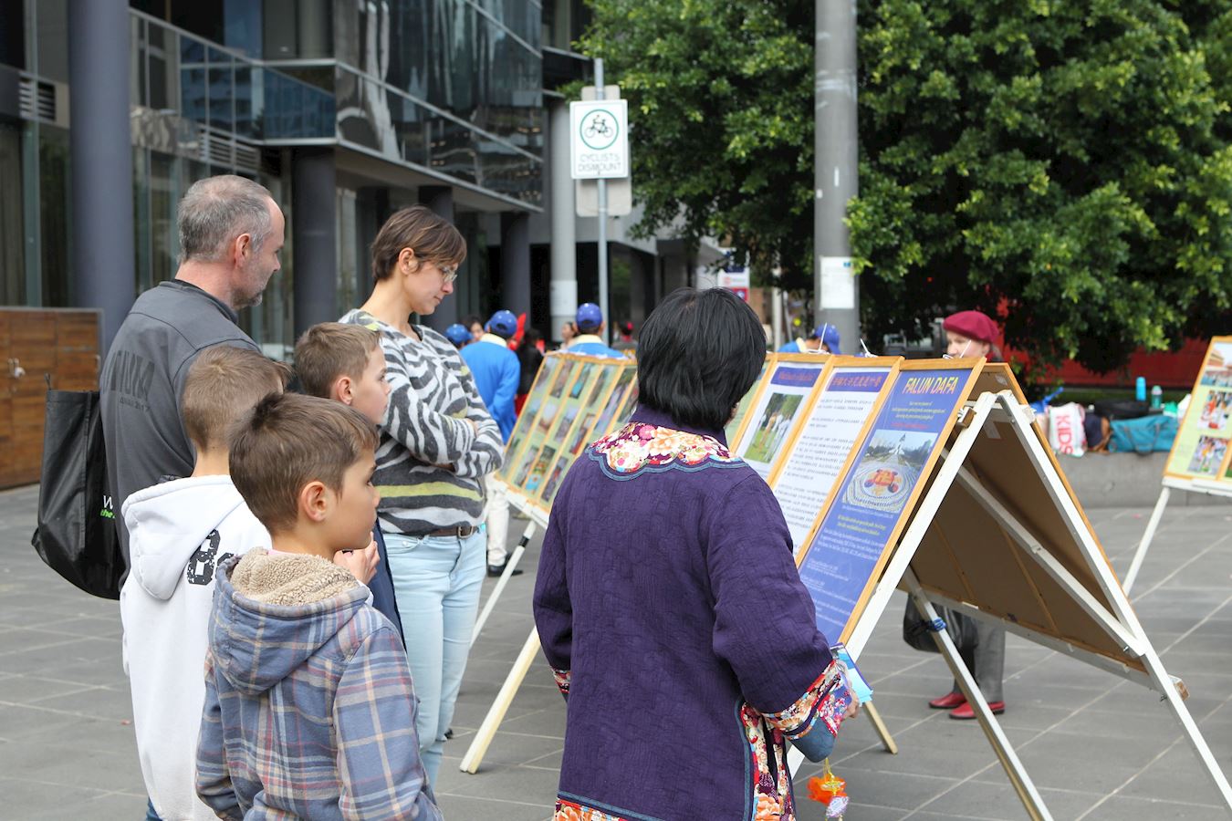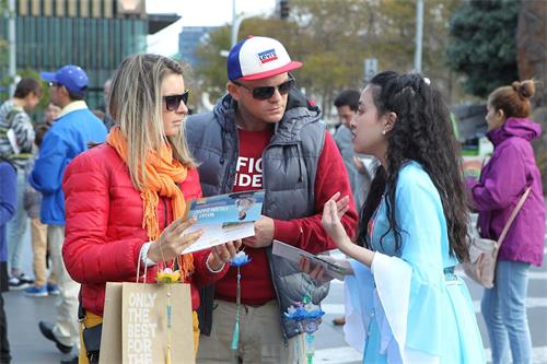 ![]() 图5~7:二零一九年五月十二日,墨尔本法轮功学员在市中心女王桥广场(Queensbridge Square)举行隆重庆典,恭贺第二十届“世界法轮大法日”和创始人李洪志先生华诞。图为民众通过真相展板、和学员交谈等方式了解法轮功真相。 |