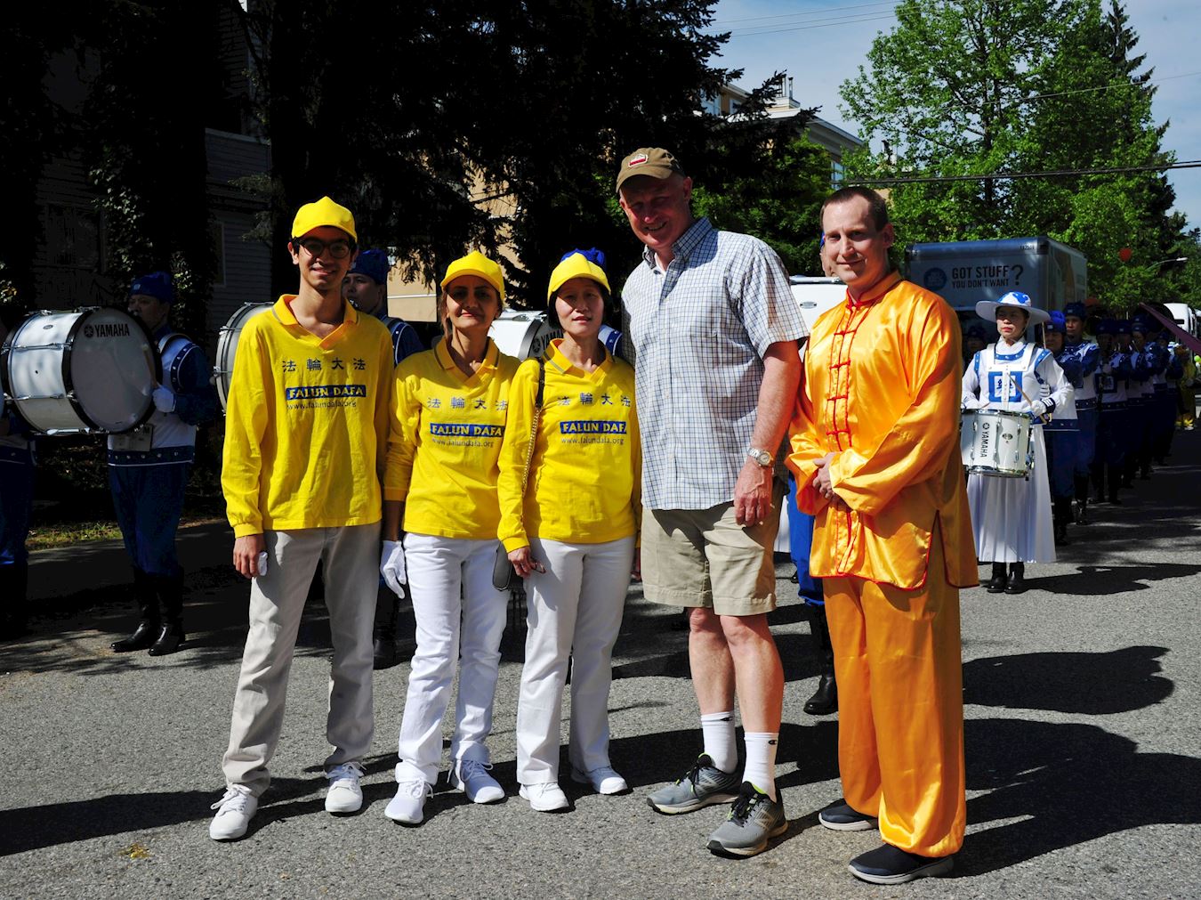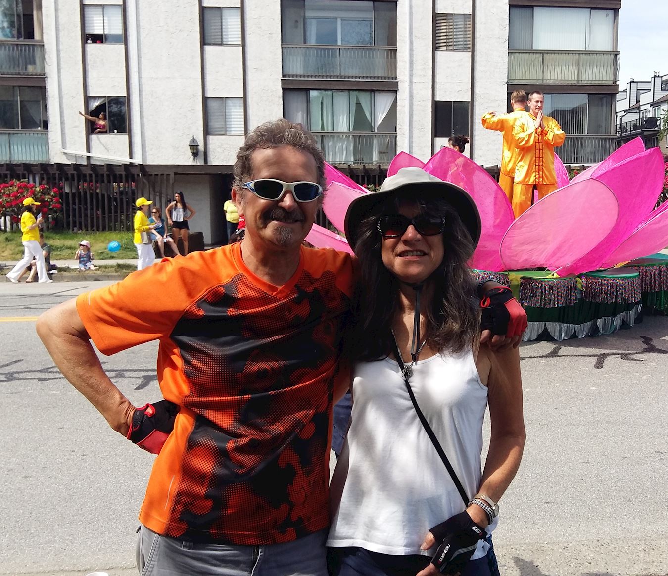 Bob Van Fusen先生和 Pepper Van Fusen女士在当地居住了三十多年了,每年都会来看五月节游行,因为这是社区团聚的盛事。他们表示法轮功游行队伍非常好,天国乐团的音乐演奏很出色,在行进中将节奏控制的非常好,花车很美,他们很感谢法轮功的游行团队展示了传统的中国文化,给高贵林港带来美好的文化,他们很喜欢。