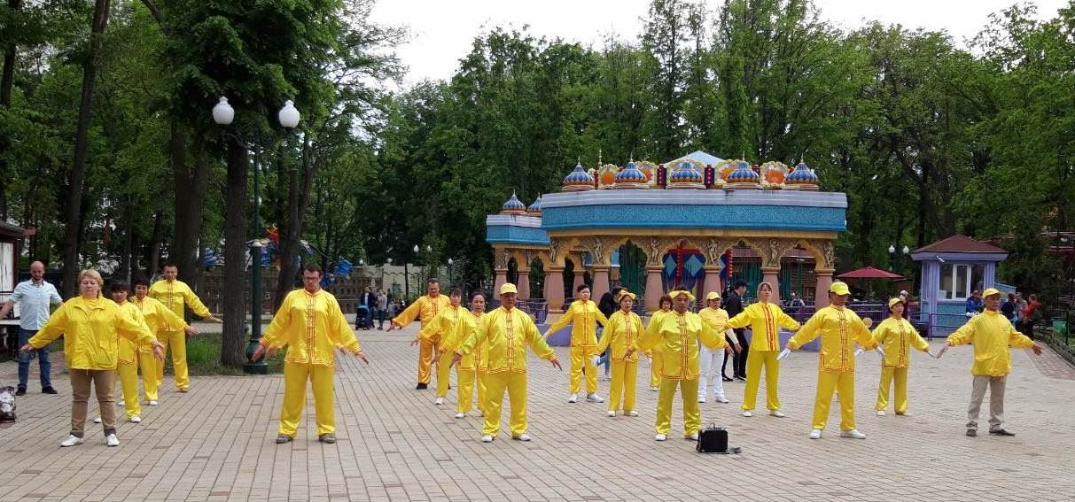 ![]() 图1:哈尔科夫法轮功学员演炼功法 |