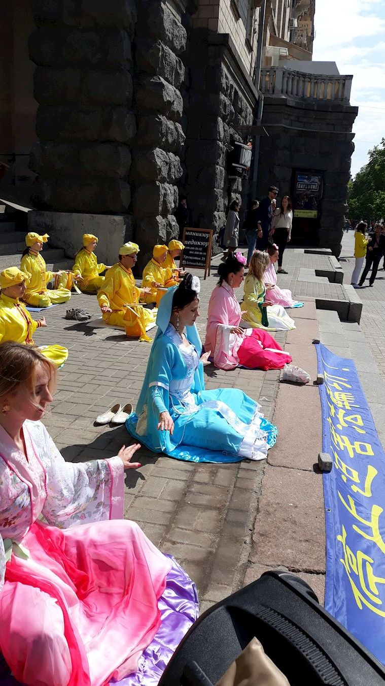 五月十二日,首都基辅市法轮功学员也以舞龙、腰鼓、演炼功法等,与市民及游客共度美好节日。