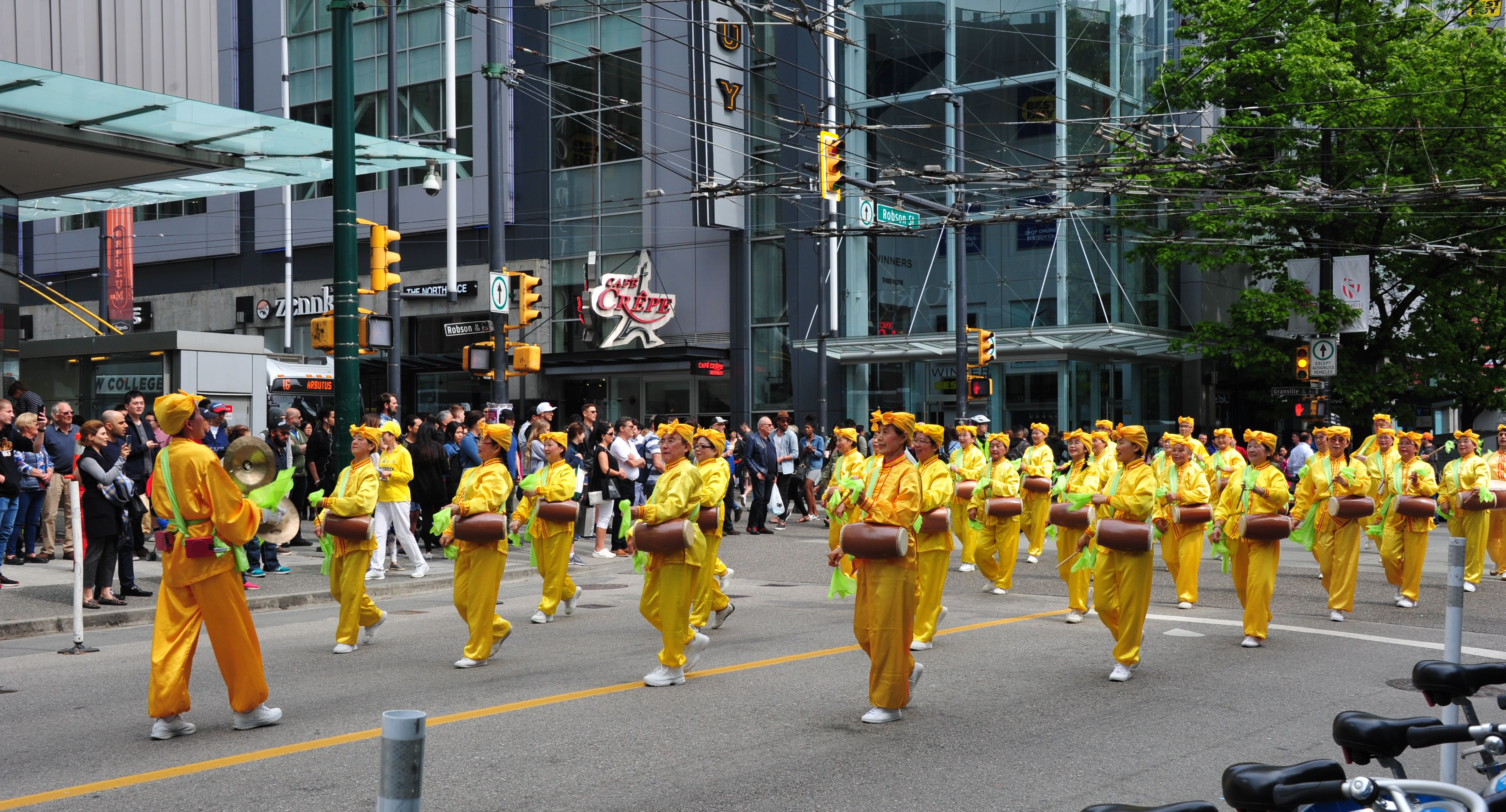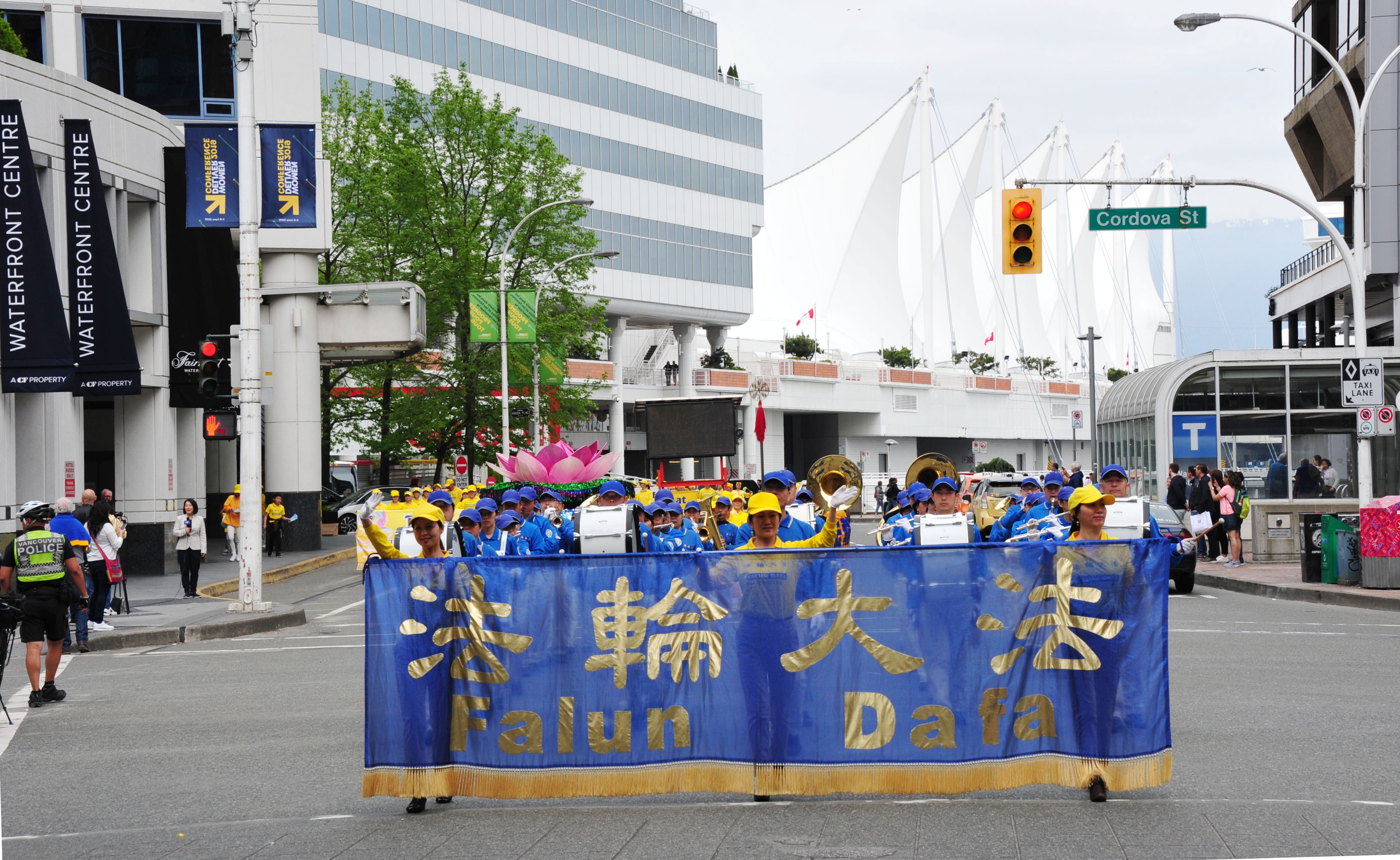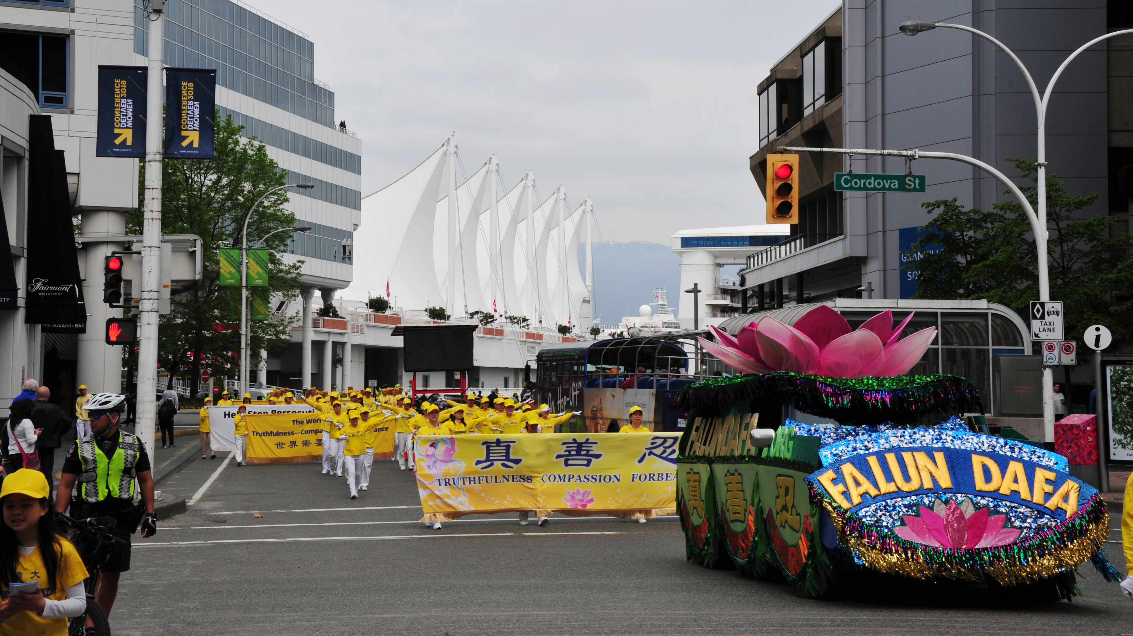 温哥华法轮功学员的游行路线在温哥华市中心最繁华的路段,途径五帆酒店等温哥华地标建筑,游行路线大约5公里,历时近2小时。