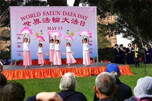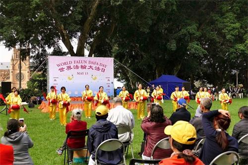 法轮功学员在海德公园(Hyde Park)、艾士菲(Ashfield)、赫斯特维尔(Hurstville) 、北莱德(North Ryde)等地区举行大、中、小型法轮功五套功法演示、免费教功、折叠莲花、中国书法撰写、载歌载舞,表演多姿多彩的传统文艺节目等,向世人颂扬法轮大法的美好,表达他们对慈悲师父的感恩。庆祝活动受到各地民众的支持,赢得欢呼和赞誉。
