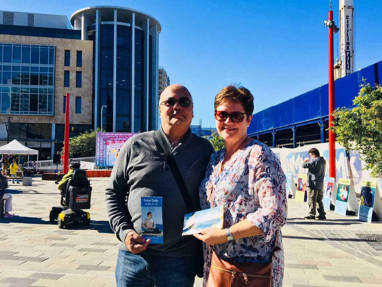 ![]() 图11:赫斯维尔(Hurstville)民众Voser(右)表示喜欢大法的美好,希望自己回去能继续跟随大法修炼。 |