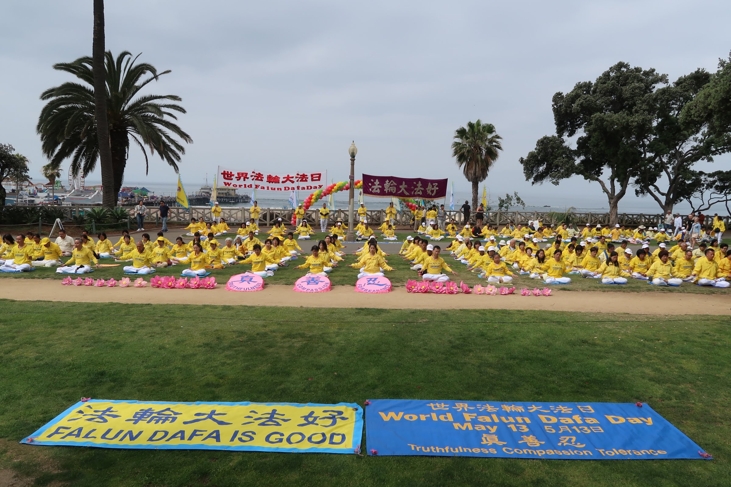 当天,洛杉矶部分法轮功学员在圣莫妮卡码头公园欢庆第二十届“五一三世界法轮大法日”、法轮大法弘传二十七周年暨法轮功创始人李洪志师父六十八岁华诞。