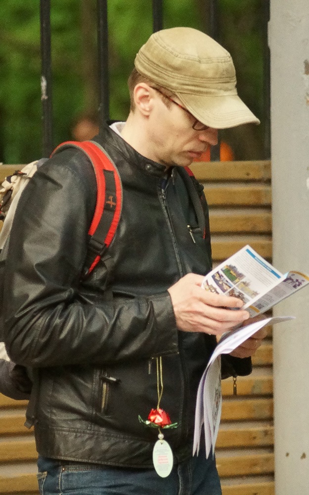 下午三点,法轮功学员的游行队伍开始缓缓行进,游行队伍由“仙女队”、“功法展示方阵”、“唐装队”、“舞龙队”、“腰鼓队”和“舞狮队”组成。沿着公园的主干道,伴随着“法轮大法好”的音乐徐徐行进,游人纷纷拿出手机等拍照录像。很多人收到了印有:“法轮大法好”和“真、善、忍”字样的小莲花,感到非常地高兴,接到信息传单后仔细阅读。
