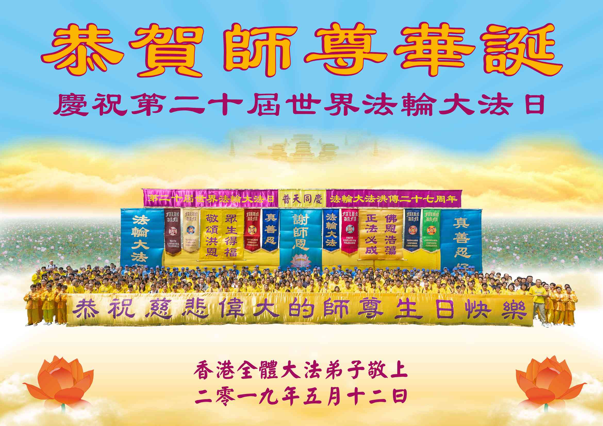 ![]() 图2:香港法轮功学员敬献给师尊的恭贺卡 |