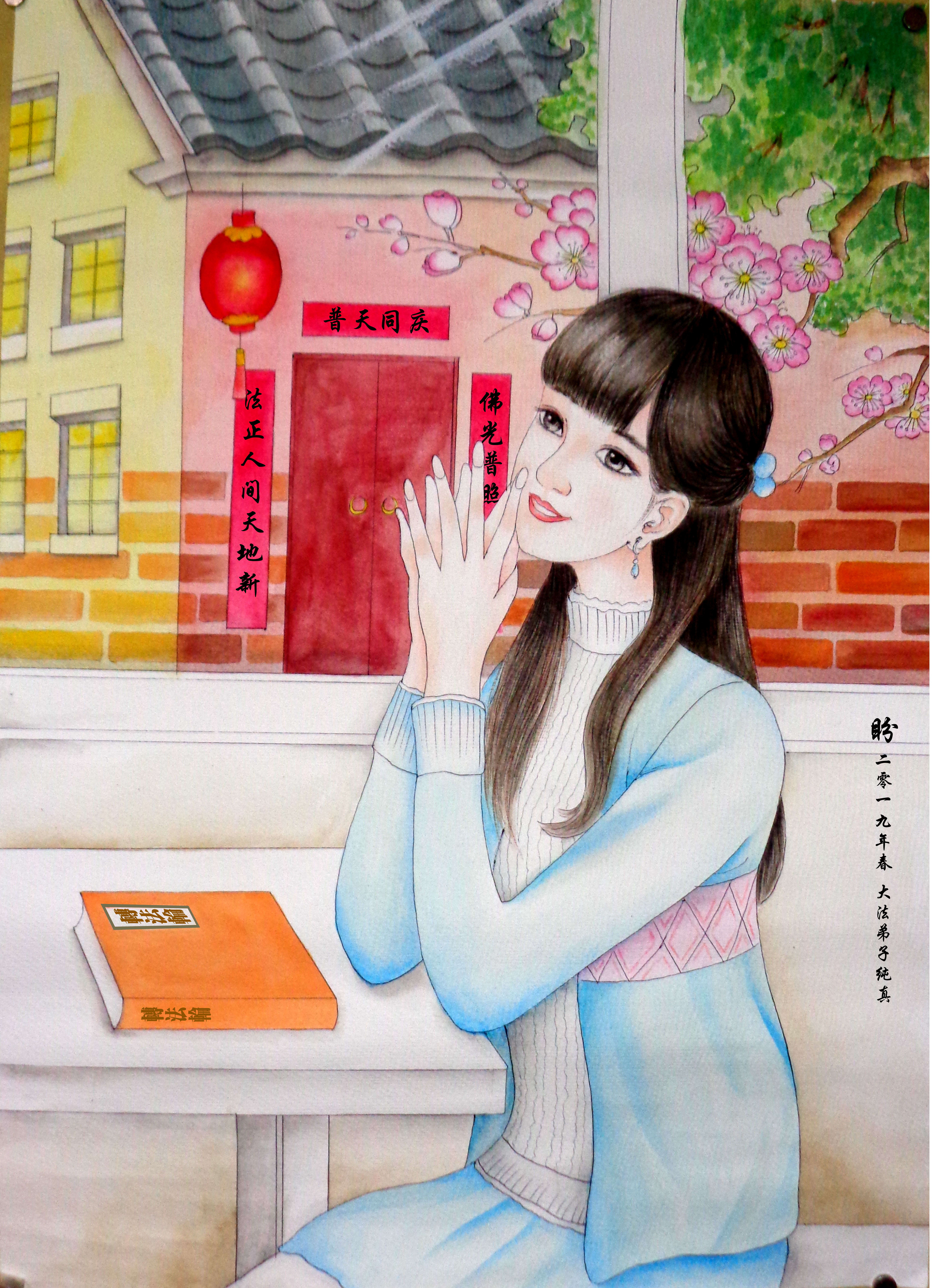 【庆祝513】工笔画:大法在洪传 快快找真相