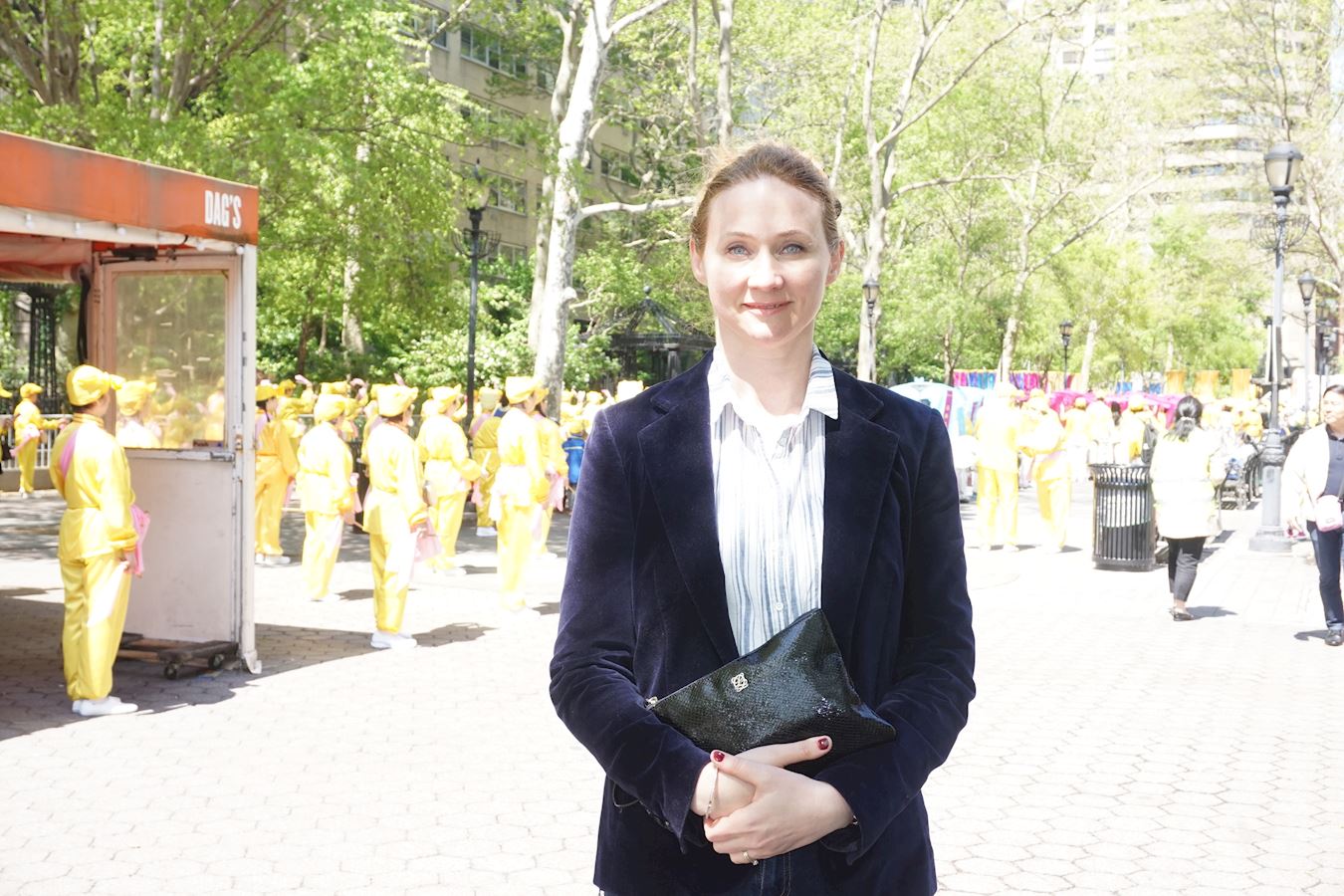 今天来到纽约,她要告诉中国人:“西方社会人们可以自由地修炼法轮功,热爱法轮功。法轮功是中国古老的文化,还是免费就可以学到,我为自己可以修炼法轮功而感到幸福和自豪。”