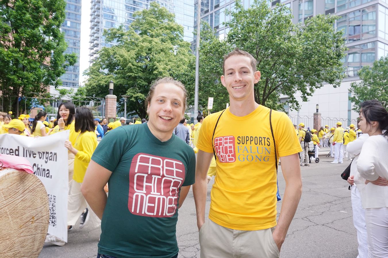 ![]() 图2:法国学员伊沃(Ivo Paulovic)(左)和朋友Miles Segni(右)一起走在集会的现场。 |
