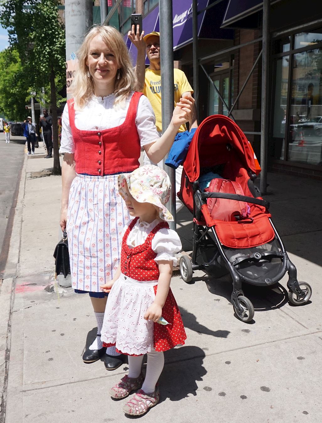 ![]() 图4:瑞士学员Alfjorden Denise和她先生Alfjorden Dan带着他们的小女儿Leilani一起来纽约参加大游行。 |