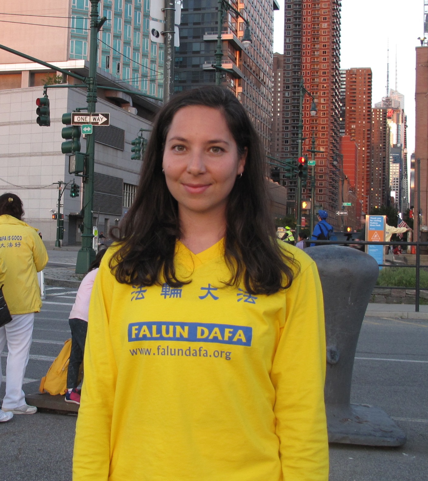 当天在纽约中领馆前抗议的Katja Hausmann来自奥地利维也纳,她修炼法轮功六年了。她表示,在奥地利,法轮功学员们每周都会在维也纳的中使馆前举行和平抗议、讲真相。因为她的医学工作背景,她对中共活摘法轮功学员器官的罪恶有更多的了解,她希望能尽早制止这样非人性的罪恶。