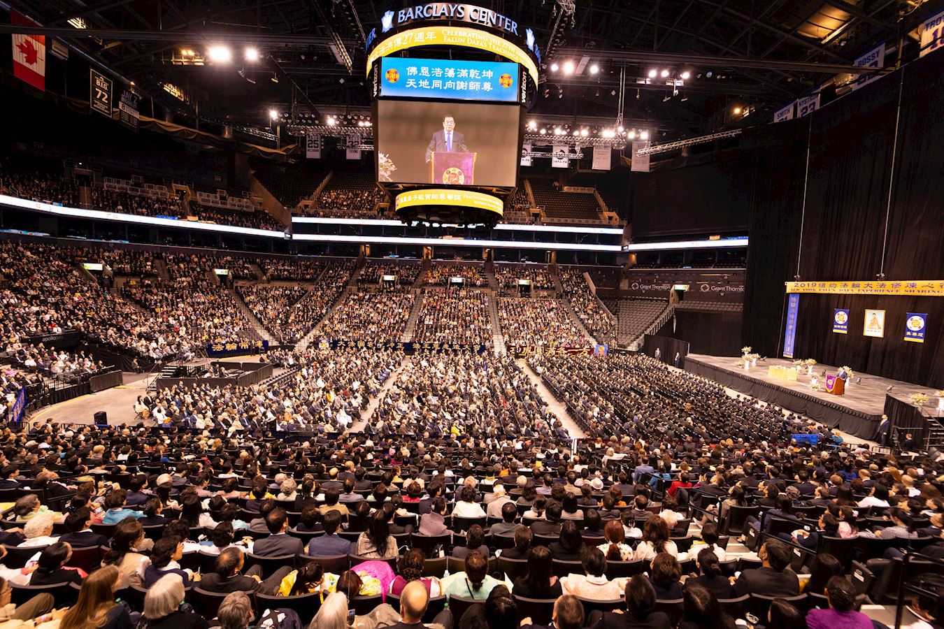 ![]() 图1:来自全球不同国家的万名法轮功学员参加位于纽约市布碌伦区巴克莱中心体育馆隆重召开的“2019年纽约法轮大法修炼心得交流会”。 |