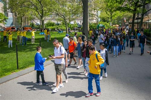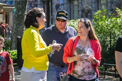 ![]() 图13:大卫·德罗哈斯(David Rojas)向行人介绍法轮功以及中共政府迫害法轮功真相 |