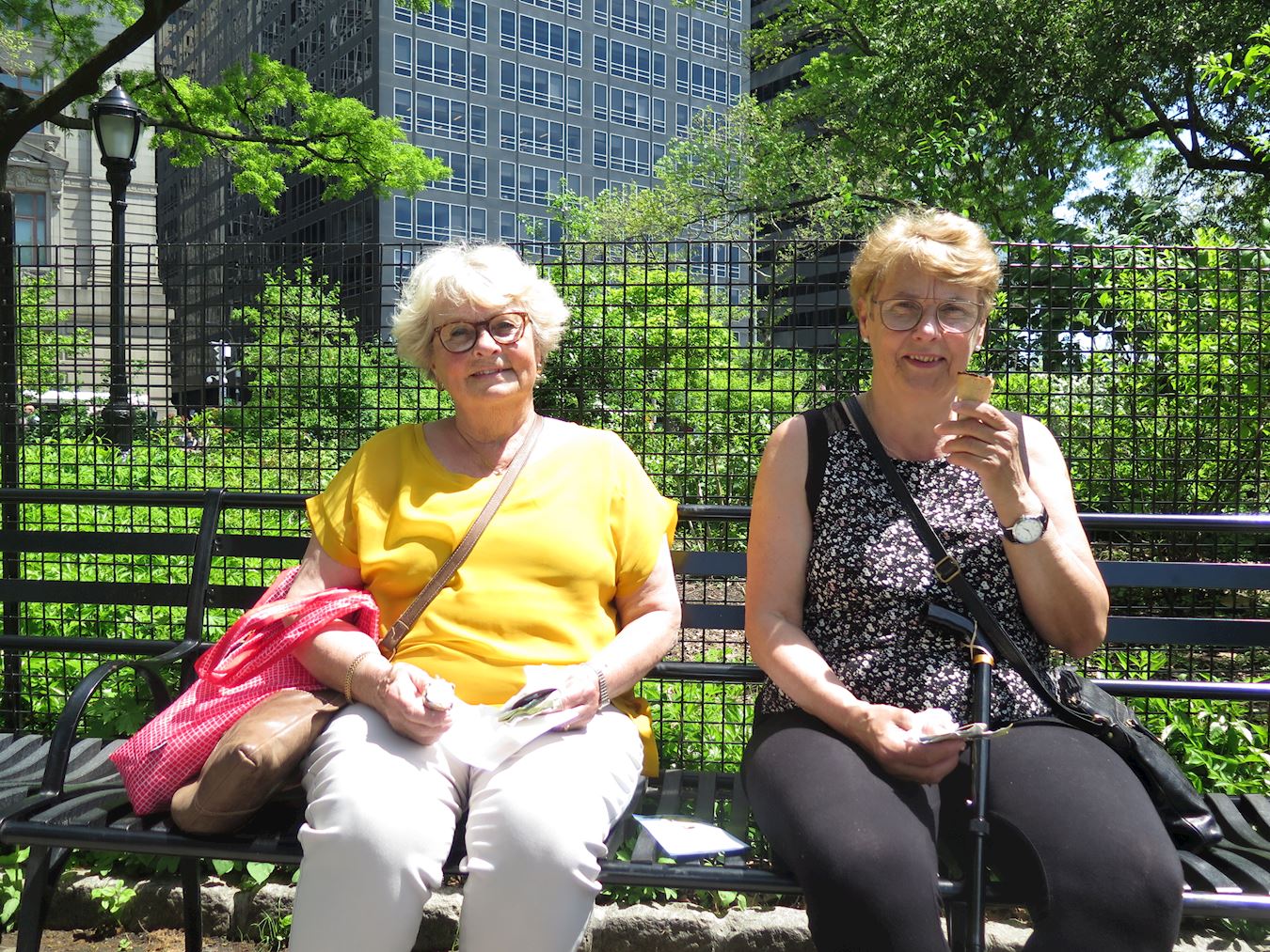 姐姐葛·玛丽(Gunn Mari)妹妹伊莲娜(Irene)来自瑞典北部,她们结伴到纽约旅游。姐姐是退休老师,妹妹则是退休信息技术工程师。她们坐在炮台公园的长椅上观看法轮功学员炼功,这是她们第一次接触法轮功。法轮功学员向她们介绍了法轮功,当她们了解到中共政府对法轮功学员的非人迫害时,姐妹俩的立场简单而明确:“我们需要这样的气功方法,我们需要真善忍这样的价值。”