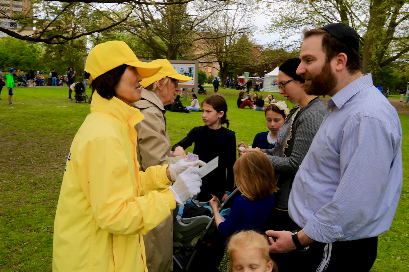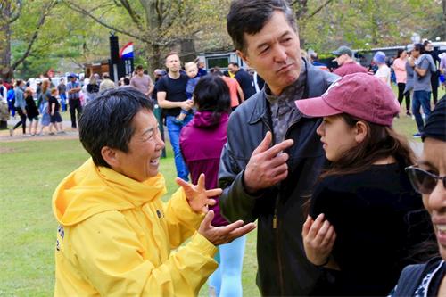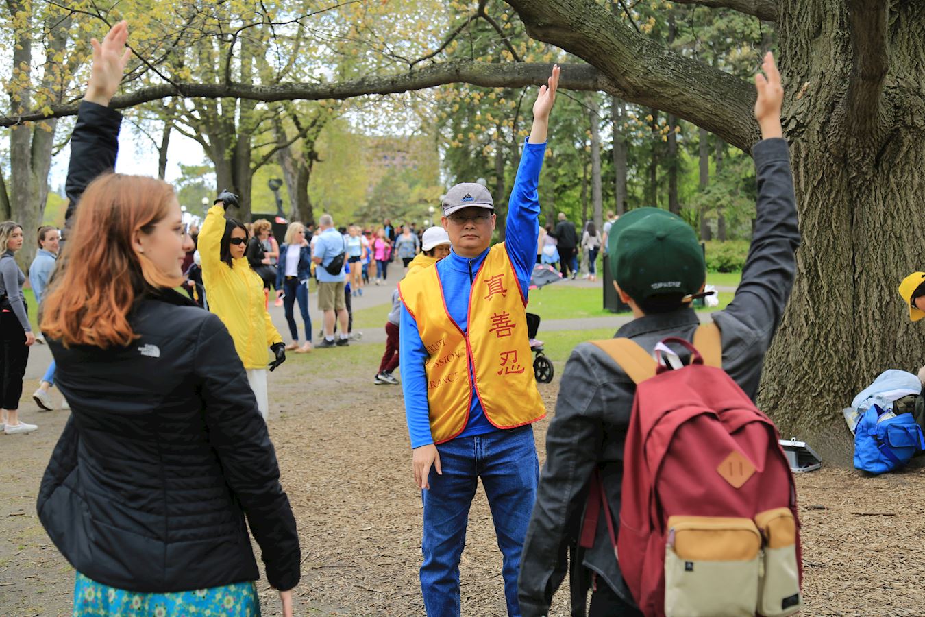 许多中国人看到炼功场面,主动过来了解真相,一些人在了解中共暴行后,表示自愿退出中共的党团队组织。