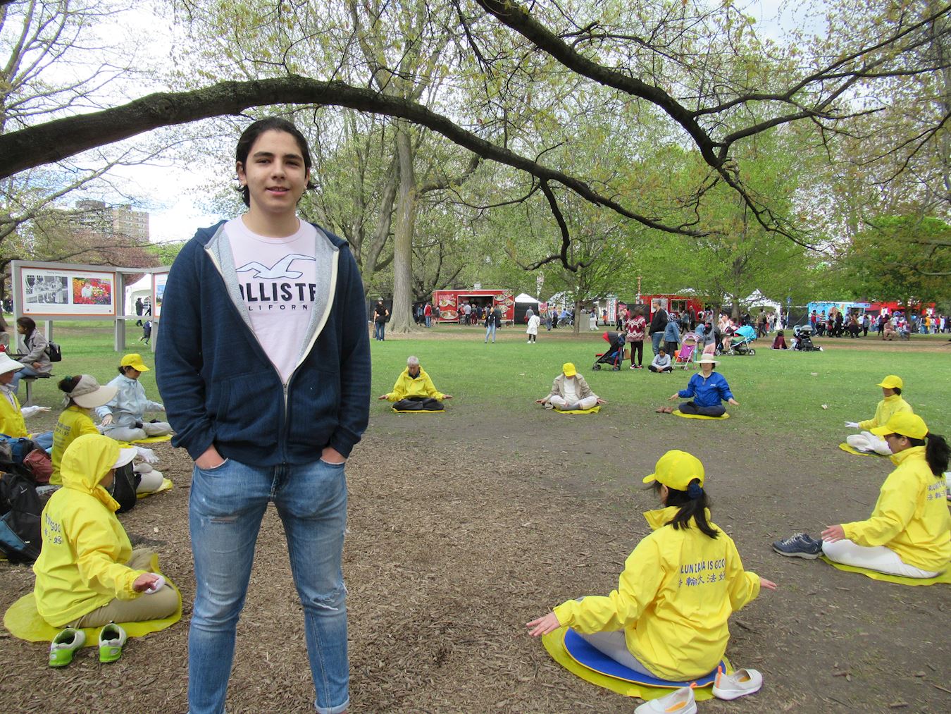 看到法轮功学员炼功场面,卡尔顿大学工程系一年级学生穆达尔艾比(Mudar Ayouby)接受采访时说:“看到他们,特别想加入其中,打坐冥想,让人释放头脑中的压力,乐在其中。”他非常欣赏真善忍的原则,他说:“每个人都应该来试试,那样世上的每个人都会感到平和、生活中不会有那么多压力,处世会容易很多,生活也会更有意义。”