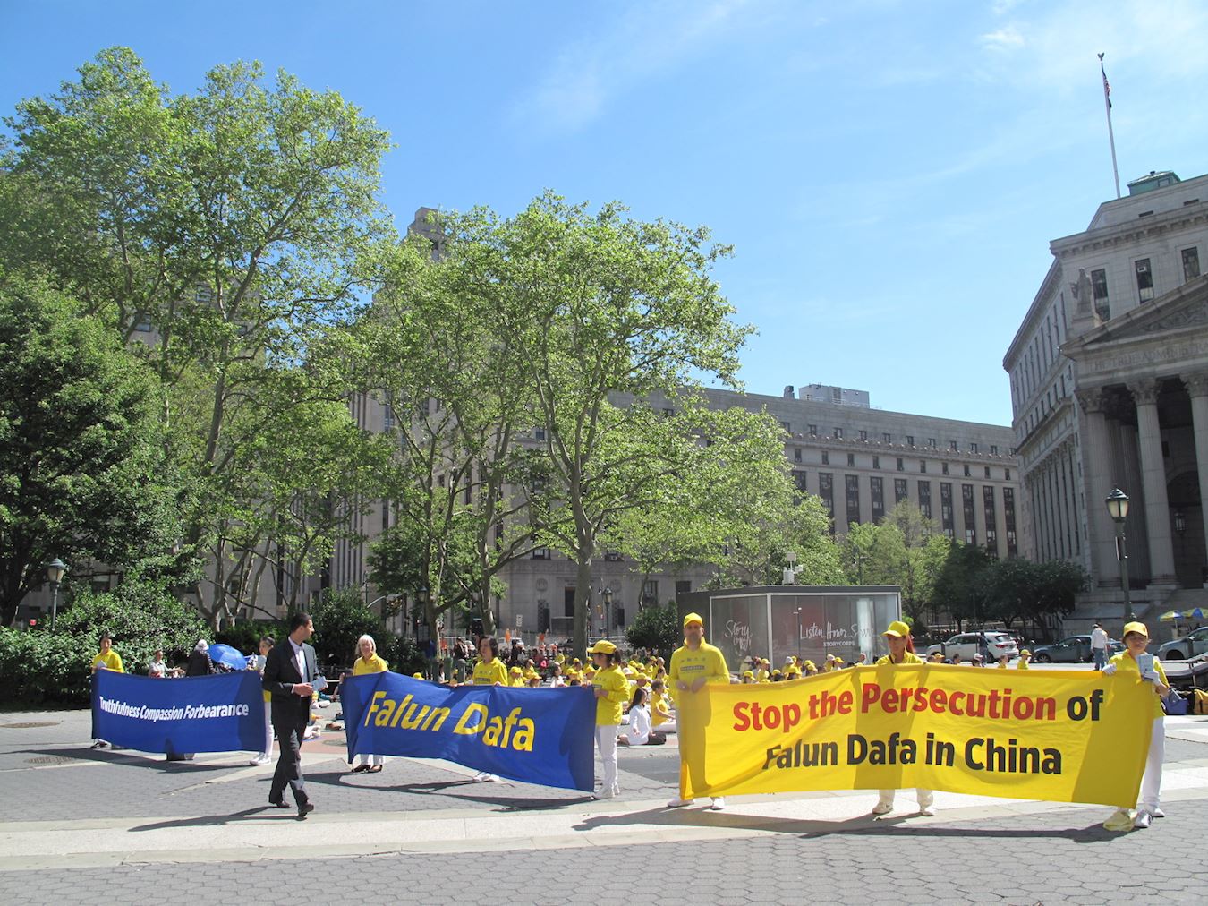 ![]() 图1:二零一九年五月十八日,法轮功学员在纽约富利广场(Foley Square)集体炼功 |