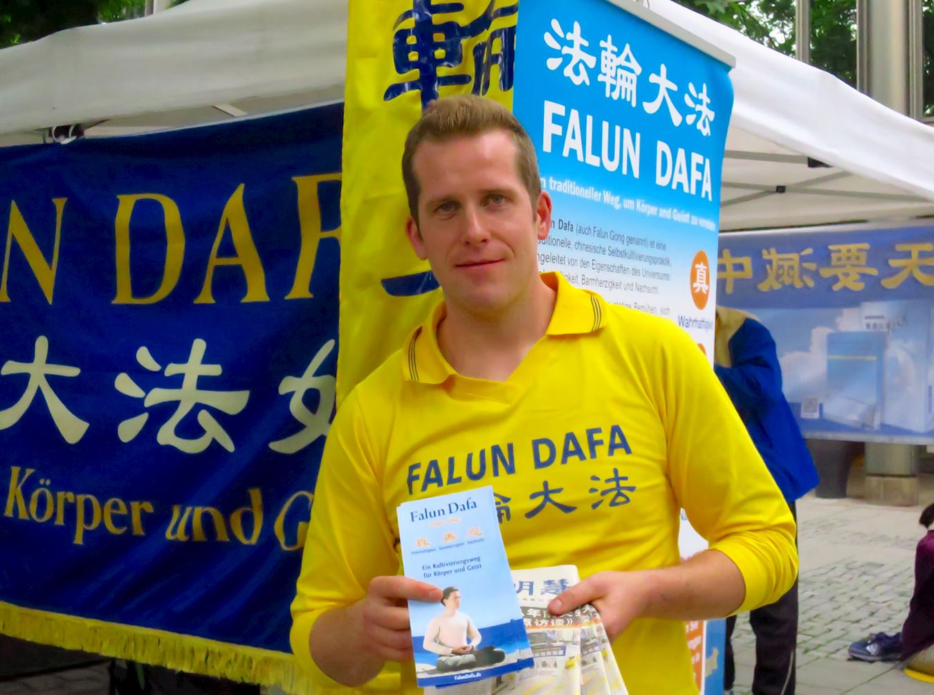 马赛·温特(Marcel Winter)三个月前刚刚开始修炼法轮功,当天他从巴伐利亚州另一座城市来慕尼黑参加活动。