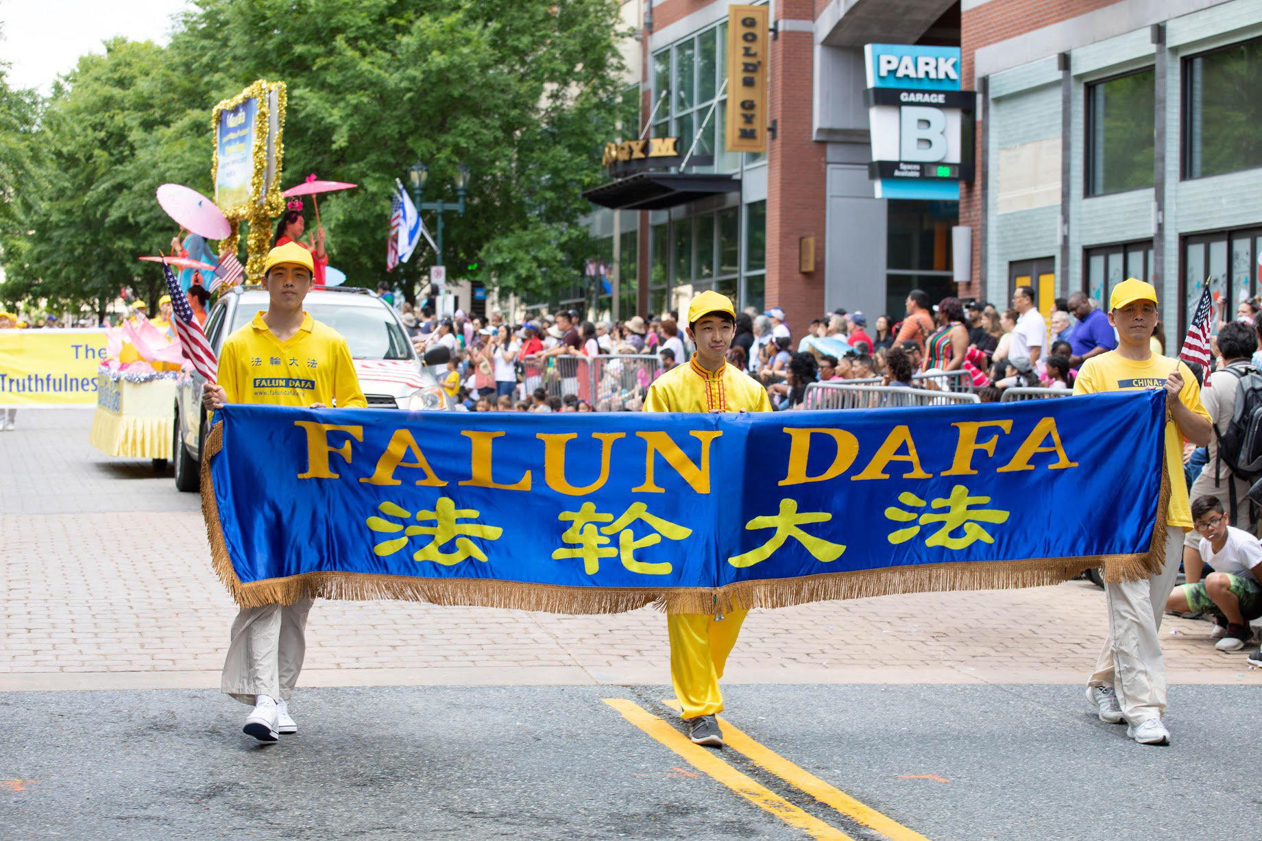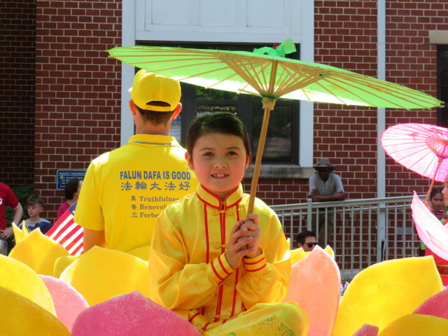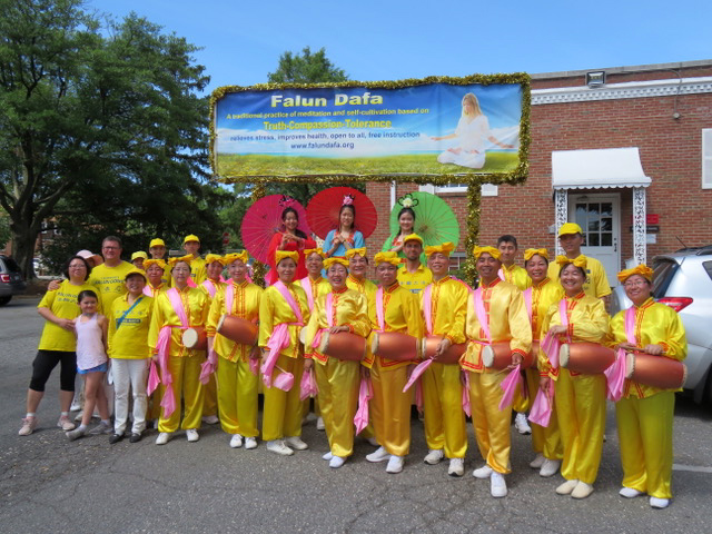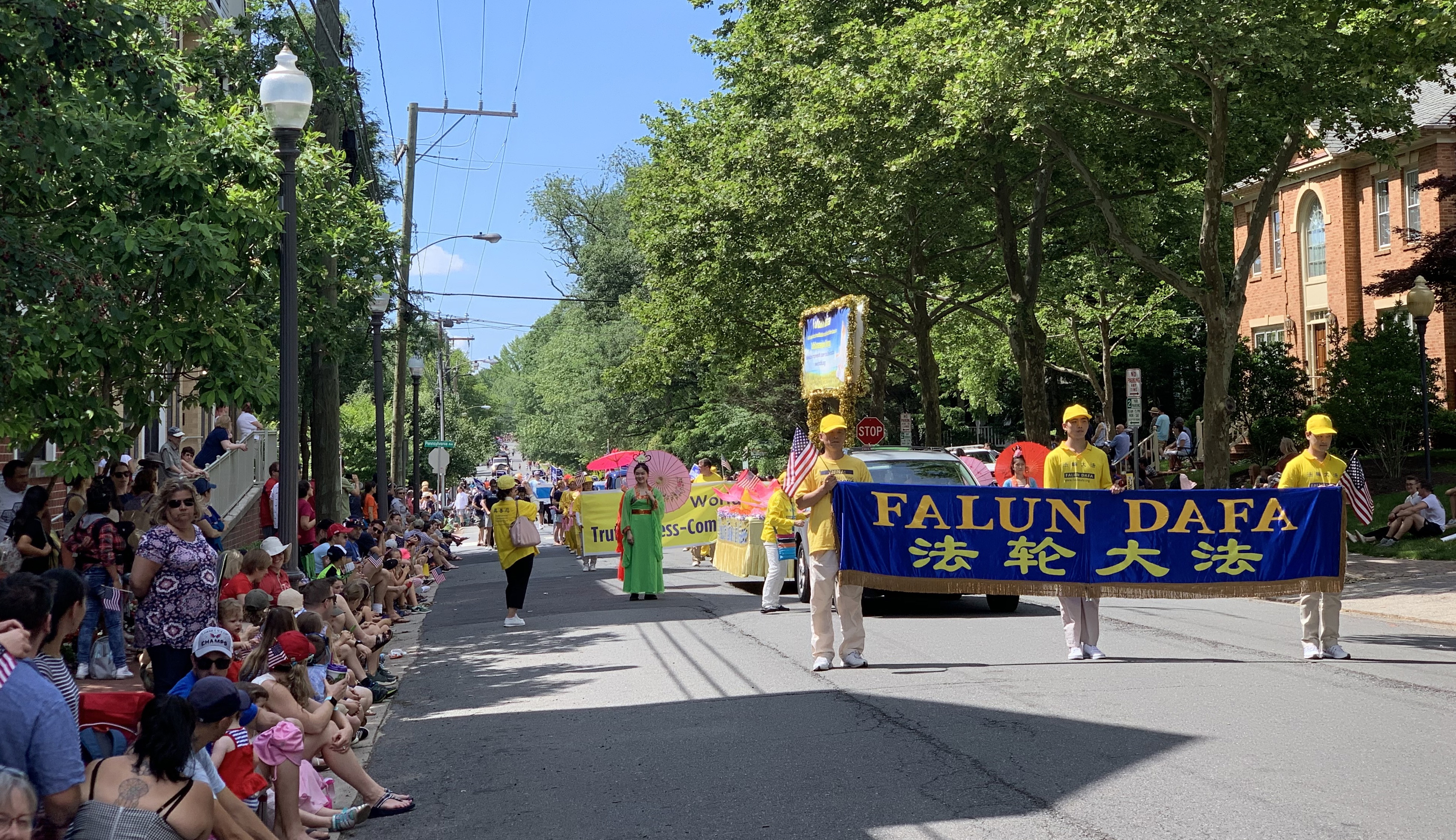 ![]() 洛克维尔市第75届阵亡将士纪念日游行,法轮功学员的队伍经过洛克维尔市中心(Rockville Town Center)。 |